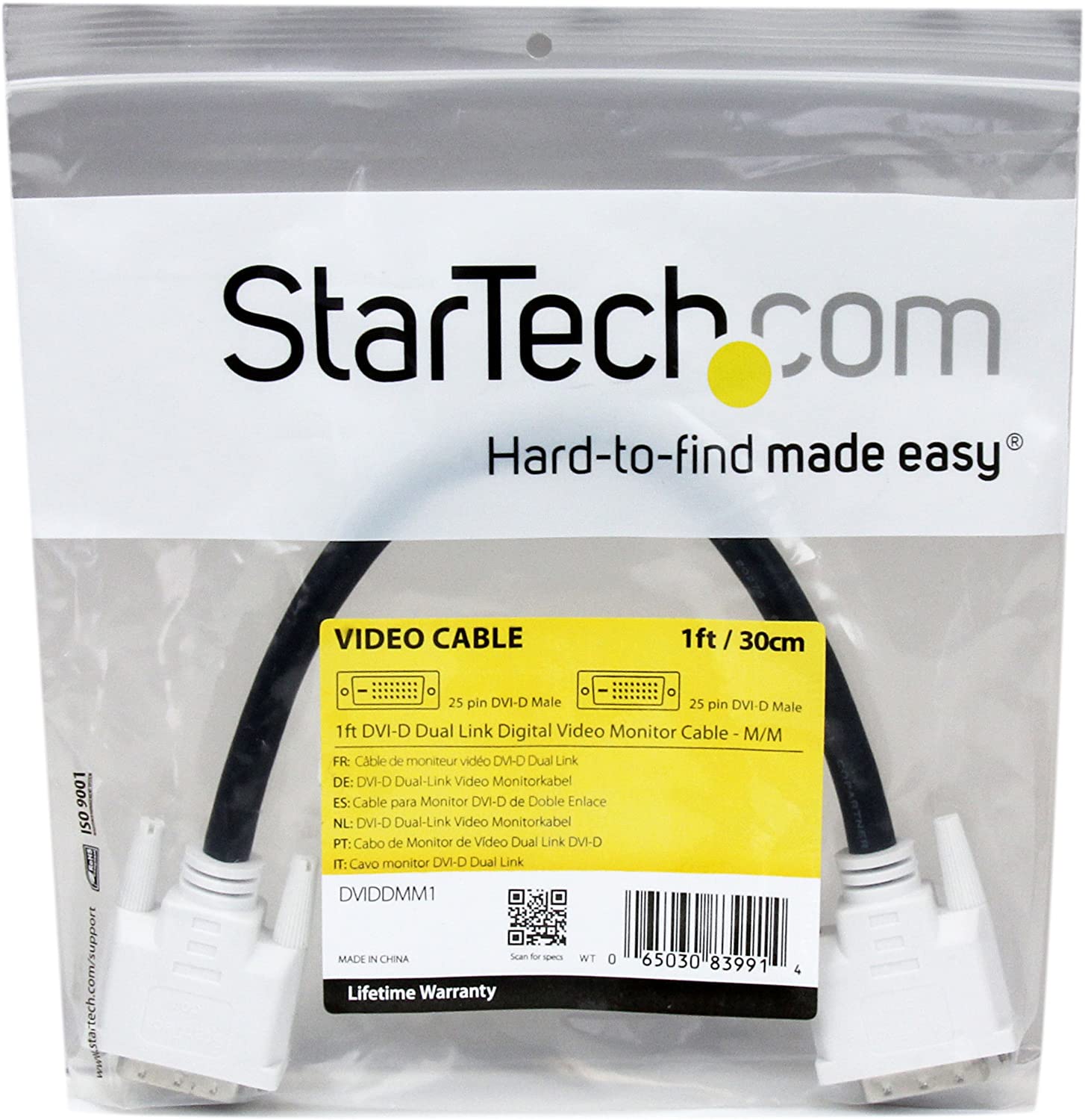 StarTech.com Dual Link DVI Cable - 1 ft - Male to Male - 2560x1600 - DVI-D Cable - Computer Monitor Cable - DVI Cord - Video Cable (DVIDDMM1) , Black