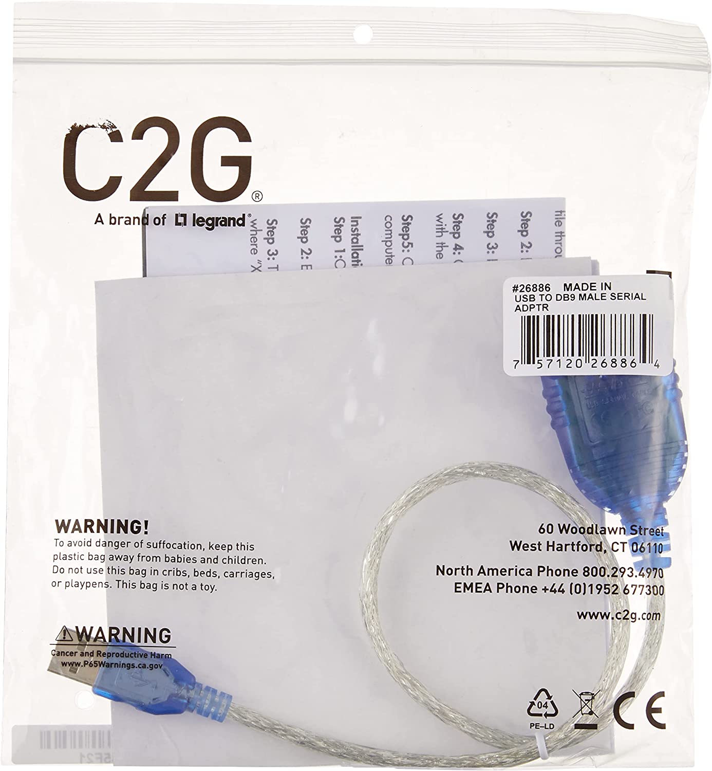 C2g/ cables to go C2G USB Adapter, USB to DB9 Adapter Cable, Blue, 1.5 Feet (0.45 Meters), Cables to Go 26886 USB to DB9 Male Adapter
