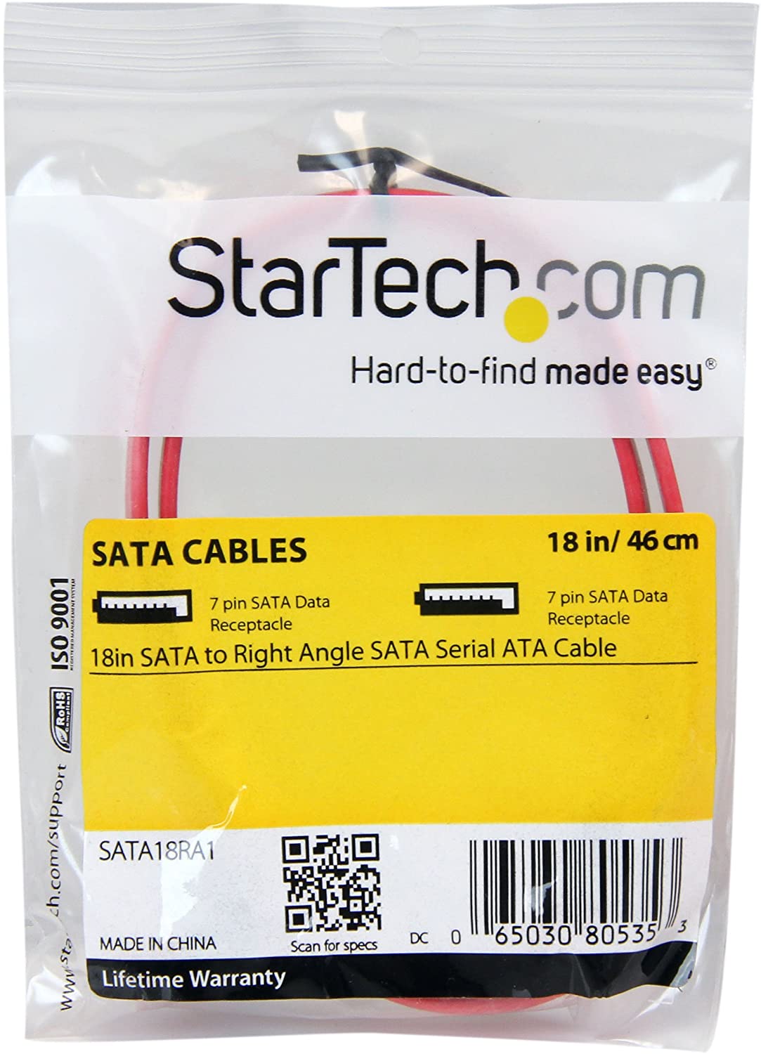 StarTech.com 18in SATA to Right Angle SATA Serial ATA Cable - 18in SATA Cable - 18 SATA Cable - 18in angled SATA Cable 18 inch Right Angle