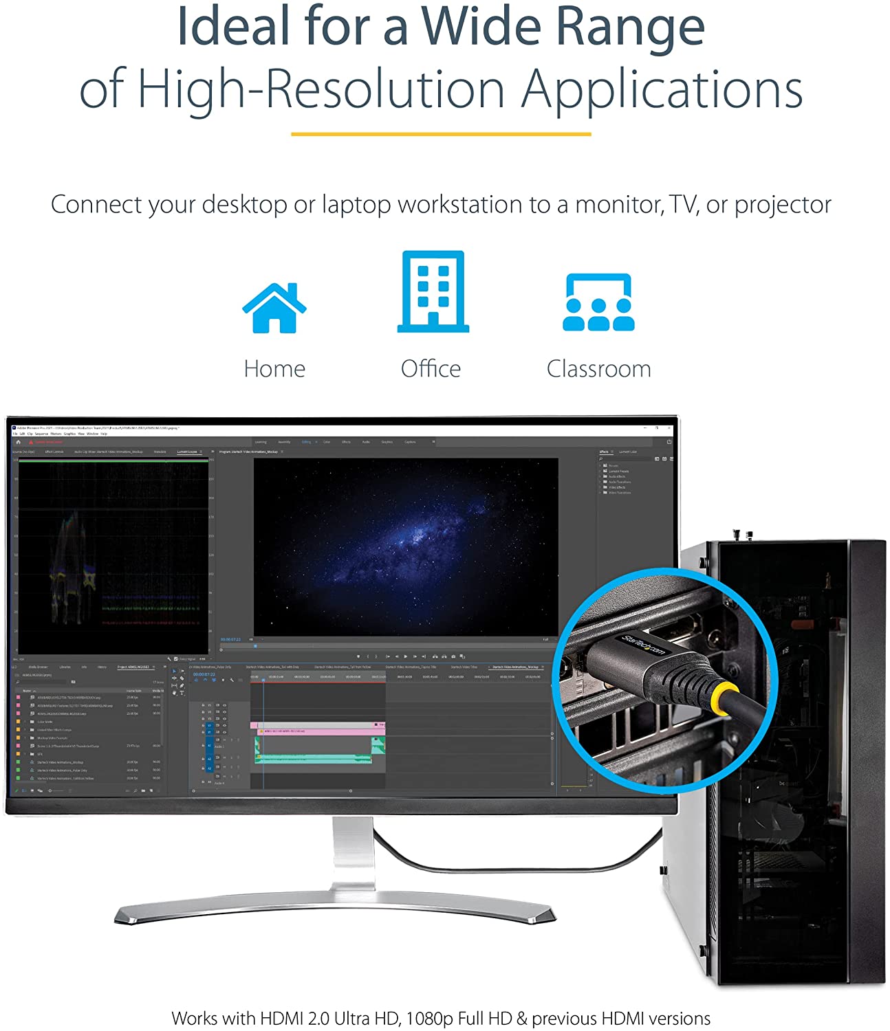 StarTech.com 10ft (3m) Premium Certified HDMI 2.0 Cable - High Speed Ultra HD 4K 60Hz HDMI Cable with Ethernet - HDR10, ARC - UHD HDMI Video Cord - for UHD Monitors, TVs, Displays - M/M (HDMMV3M) 9.9 ft / 3 m