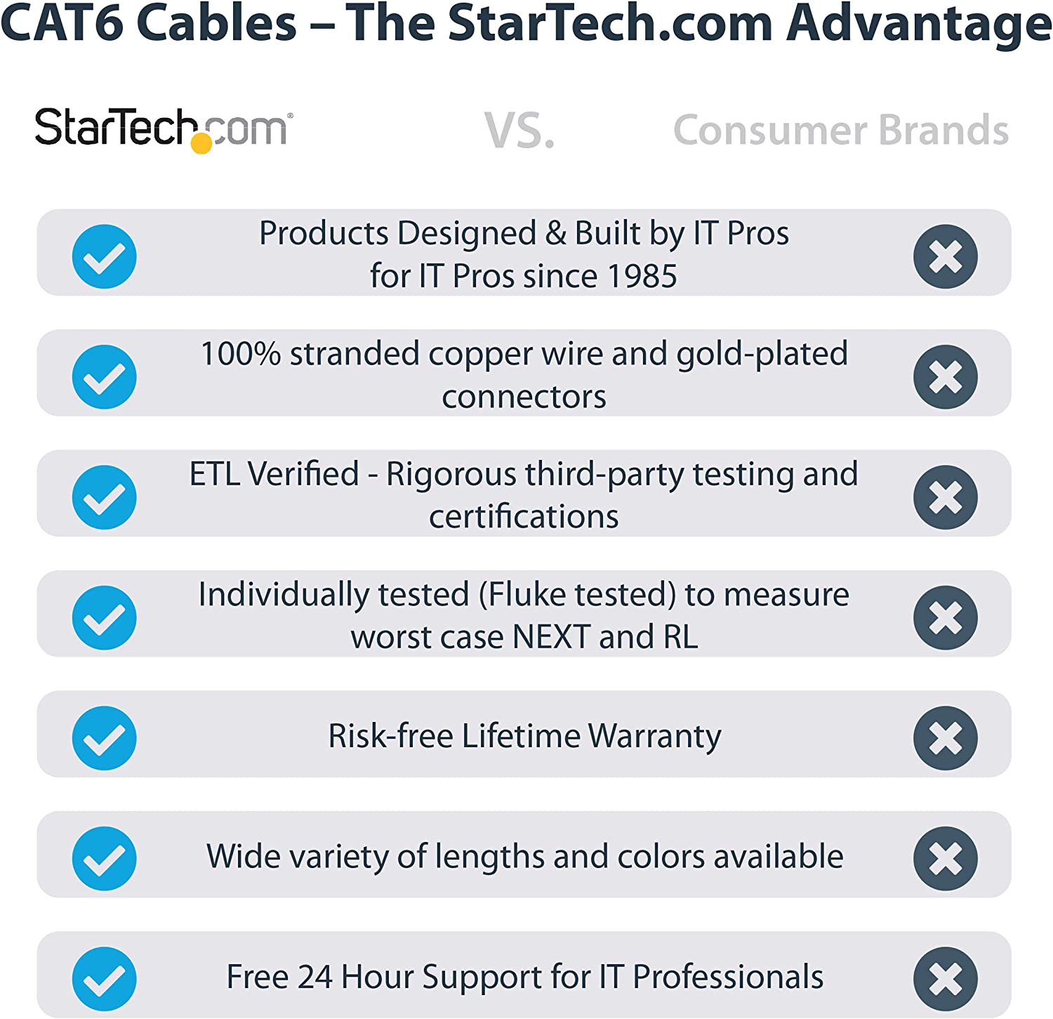 Startech 10ft (3m) CAT6 Ethernet Cable - LSZH (Low Smoke Zero Halogen) - 10 Gigabit 650MHz 100W PoE RJ45 UTP Network Patch Cord Snagless w/Strain Relief - Blue CAT 6, ETL Verified (N6LPATCH10BL) 10 ft Blue is backordered and will ship as soon as it is back in stock.