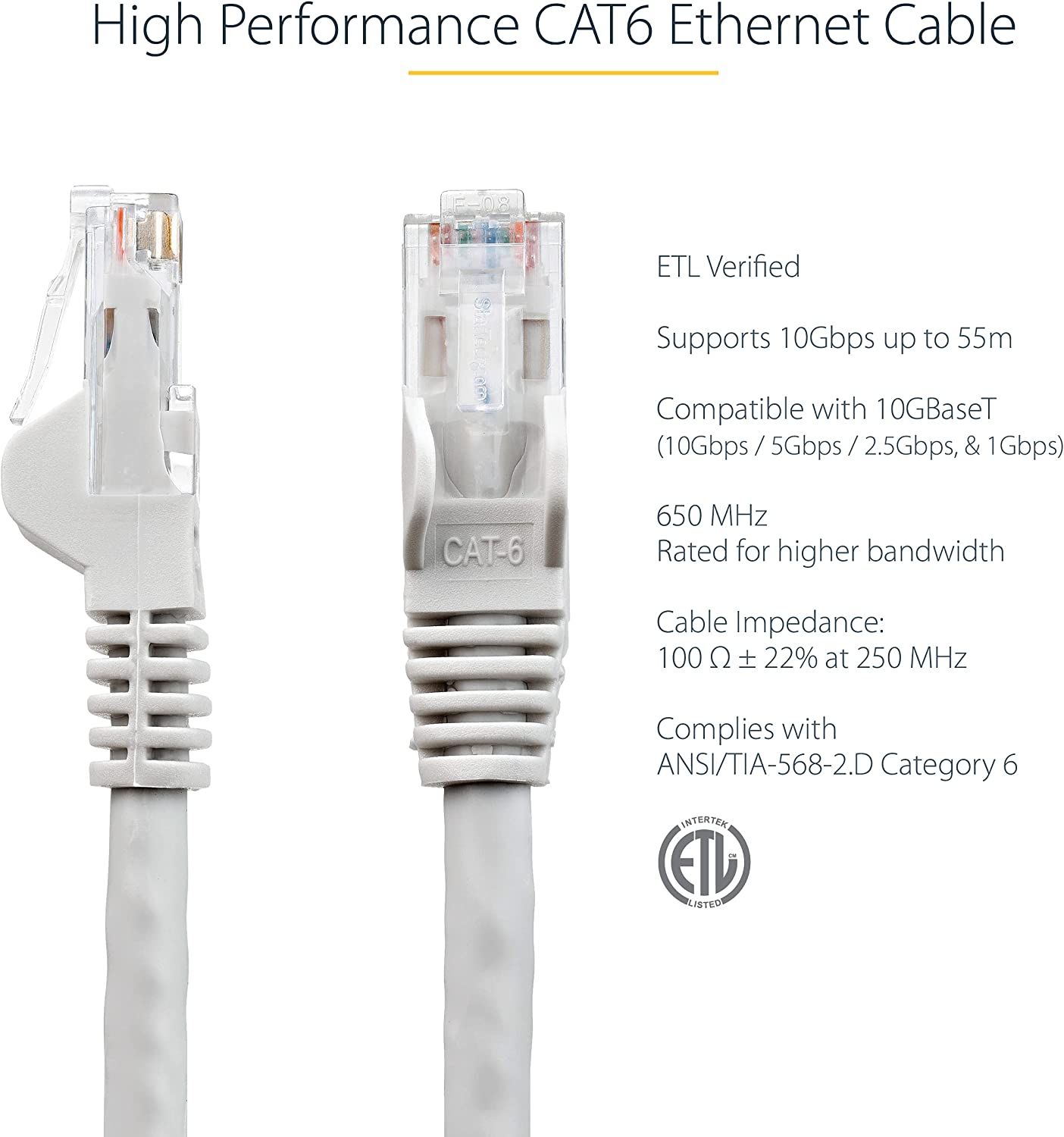 StarTech.com 50ft CAT6 Ethernet Cable - Gray CAT 6 Gigabit Ethernet Wire -650MHz 100W PoE RJ45 UTP Network/Patch Cord Snagless w/Strain Relief Fluke Tested/Wiring is UL Certified/TIA (N6PATCH50GR) Gray 50 ft / 15 m 1 Pack