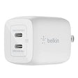 Belkin 45W Dual USB-C Wall Charger, Fast Charging Power Delivery 3.0 with GaN Technology for iPhone 14, 13, Pro, Pro Max, Mini, iPad Pro 12.9, MacBook, Galaxy S23, S23+, Ultra, Tablet, More - White