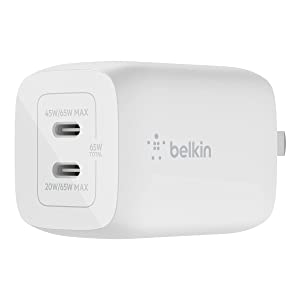 Belkin 65W Dual USB-C Wall Charger, Fast Charging Power Delivery 3.0 with GaN Technology for iPhone 14, 13, Pro, Pro Max, Mini, iPad Pro 12.9, MacBook, Galaxy S23, S23+, Ultra, Tablet, More - White is backordered and will ship as soon as it is back in stock.