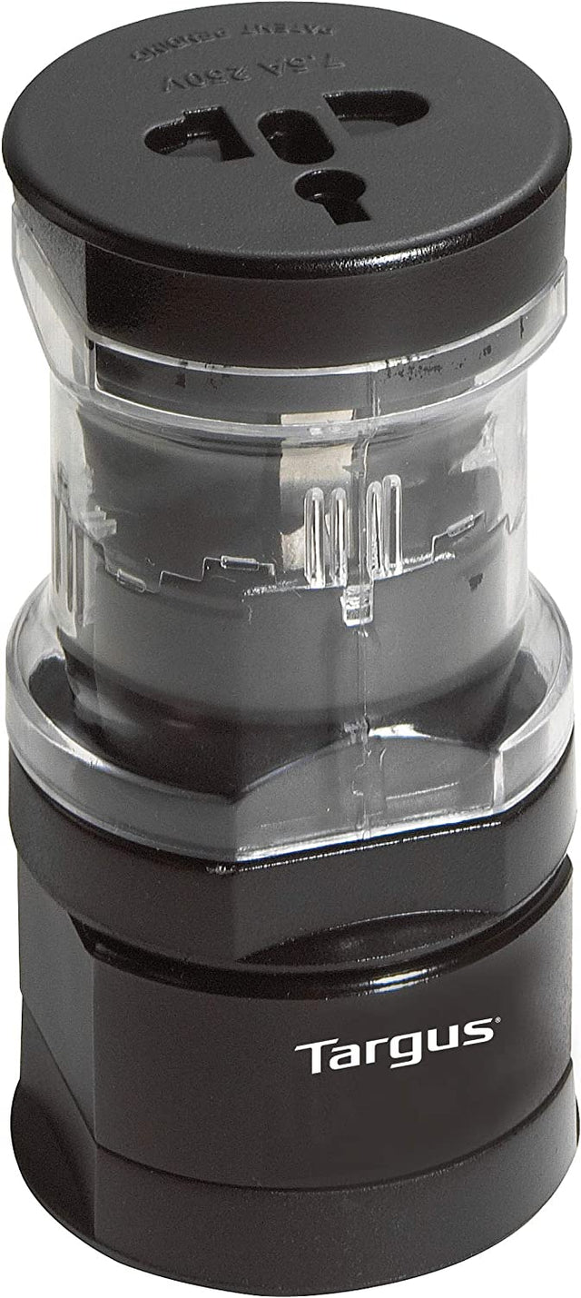 The Targus World Power Travel Adapters create a universal solution that allows you to connect to any standard wall outlet worldwide. Simply attach any of the three interchangeable adapters to your device s AC power cord. Adapters included are for use in North America, Europe, UK, Australia and Asia Pacific. A storage tube isalso included for ease of portability. They also feature red safety shutters for protection against accidental contact with electrical current and are made of high impact durable polycarbonate plastic. Travel light around the world with one set of universal power adapters for all of your powering needs. Inter-changeable - Universal faceplates compatible with standard wall outlets worldwide Protection - Red safety shutters provide protection against accidental contact with electrical current. Easy Transportation - Flexible, can be broken apart for ease of portability. Compact design, ideal for travel. Dimensions - Length: 3.37 inches. Diameter: 1.85 inches Material - Three interchangeable adapters constructed of high impact, durable, VO rated polycarbonate plastic. Technical: - Voltage rating: 250 VAC - Maximum current rating: 10 Amps - Worldwide voltage compatible (110 VAC-250 VAC).