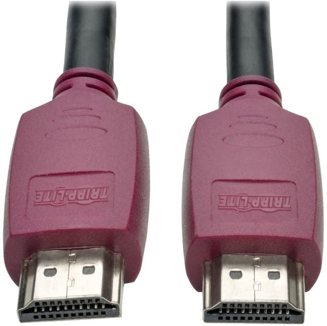 The P569-010-CERT Premium High-Speed HDMI Cable with Ethernet (M/M) is recommended for home theater systems and other applications that display Ultra High Definition (UHD) video and multi-channel audio. It connects an HDMI-enabled source device, such as a Blu-ray player, video game system or computer, to a 4K-enabled television, monitor or projector.