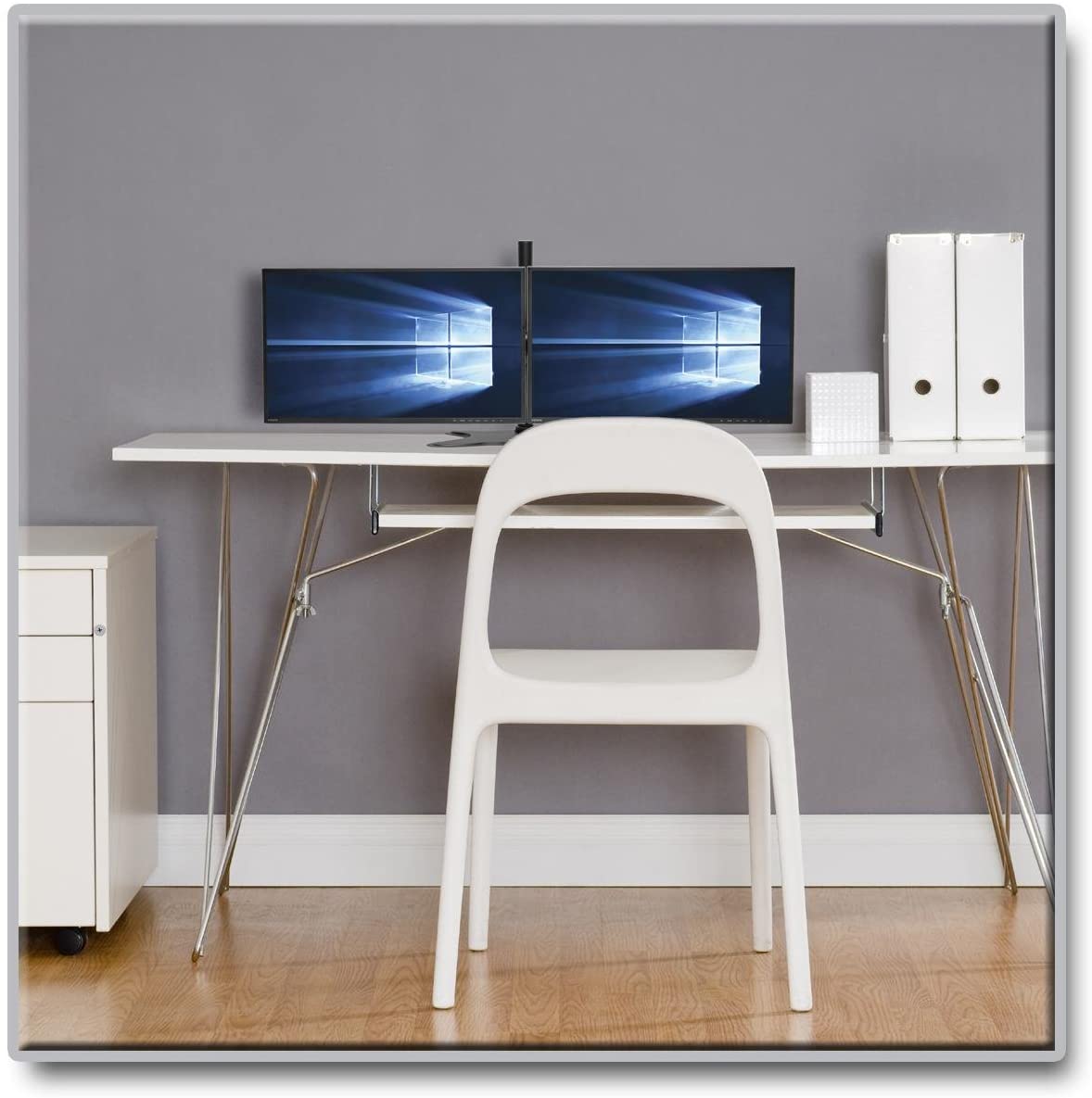 The VESA-compliant DDR1327SDD Dual Flat-Screen Monitor Desktop Mount Stand mounts two flat-screen monitors on a sturdy base, allowing you to free up valuable workspace on your desk, table or workstation. Recommended for home or office, the DDR1327SDD fits most flat-panel displays from 13 to 27 inches. Position your monitors with one-touch ease to optimize viewing angle and height to fit your environment and comfort level. A 180° swivel and -45° to +45° tilt capability minimizes glare and provides comfortable viewing from multiple angles. A 360° rotation lets you view your monitors in portrait or landscape orientation. Each VESA mount supports up to 26 pounds. The durable steel frame with scratch-resistant powder-coated finish tolerates frequent handling and blends with any décor. Mounting hardware is included. Conforms to VESA-compliant displays with either of the following mounting hole patterns: 75 x 75 mm and 100 x 100 mm.