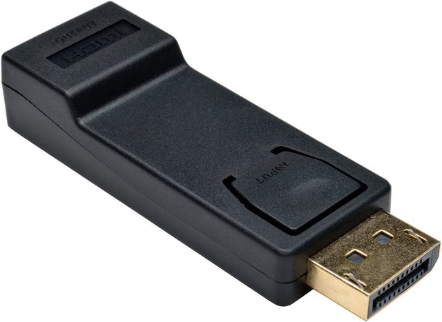Tripp Lite's p136-000-1 compact DisplayPort (male) to HDMI (female) adapter allows you to connect a computer with a DisplayPort output to an HDMI monitor. Supports computer video resolutions up to 1920 x 1200, and HD resolutions up to 1080p. Fully-Molded design ensures a long life of enjoyment. The p136-000-1 is a passive adapter and requires that the connected computer has a DP plus plus ( DisplayPort plus plus ) port, which allows HDMI and dvi signals to be passed through; check the documentation for your DisplayPort source for compatibility. Key features connect a HDMI monitor to a computer with a DisplayPort output DisplayPort (male) to HDMI (female); fully-molded supports computer video resolutions up to 1920 x 1200, and HD resolutions up to 1080p the p136-000-1 supports transmission of an audio signal as long as it is supported by the DisplayPort source. Check the documentation for your DisplayPort source for compatibility. Supports DTS-HD, Dolby true HD and 7.1 Channel surround sound audio the p136-000-1 is a passive adapter and requires that the connected computer has a DP plus plus ( DisplayPort plus plus ) port, which allows HDMI and dvi signals to be passed through; check the documentation for your DisplayPort source for compatibility. HDCP-compliant 1-year limited warranty system requirements computer with a DisplayPort output display with an HDMI port the p136-000-1 supports transmission of an audio signal as long as it is supported by the DisplayPort source. Check the documentation for your DisplayPort source for compatibility. The p136-000-1 is a passive adapter and requires that the connected computer has a DP plus plus ( DisplayPort plus plus ) port, which allows HDMI and dvi signals to be passed through; check the documentation for your DisplayPort source for compatibility.