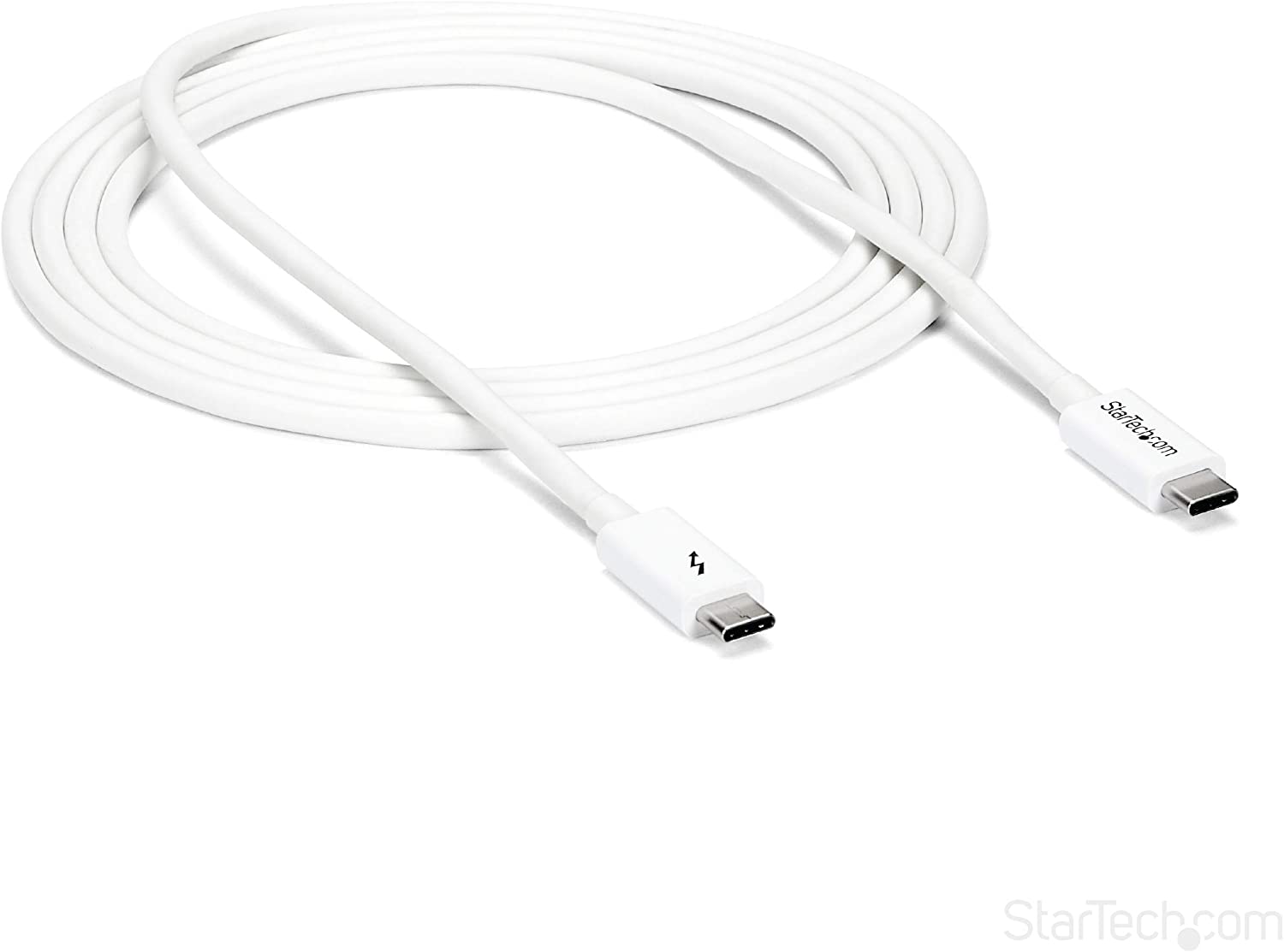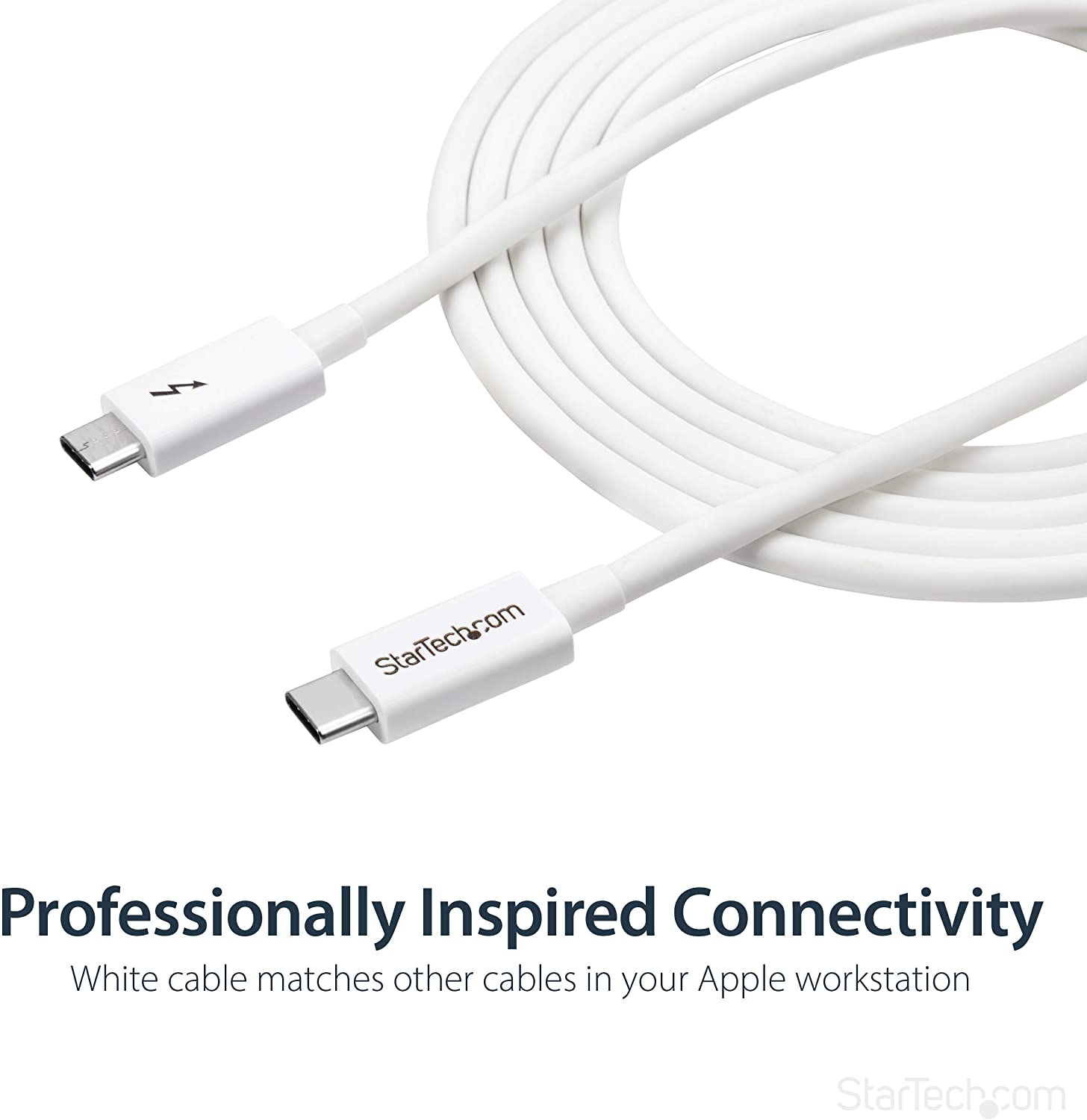 StarTech.com 20Gbps Thunderbolt 3 Cable - 6.6ft/2m - White - 4k 60Hz - Certified TB3 USB-C to USB-C Charger Cord w/ 100W Power Delivery (TBLT3MM2MW) 6ft 20Gbps | White