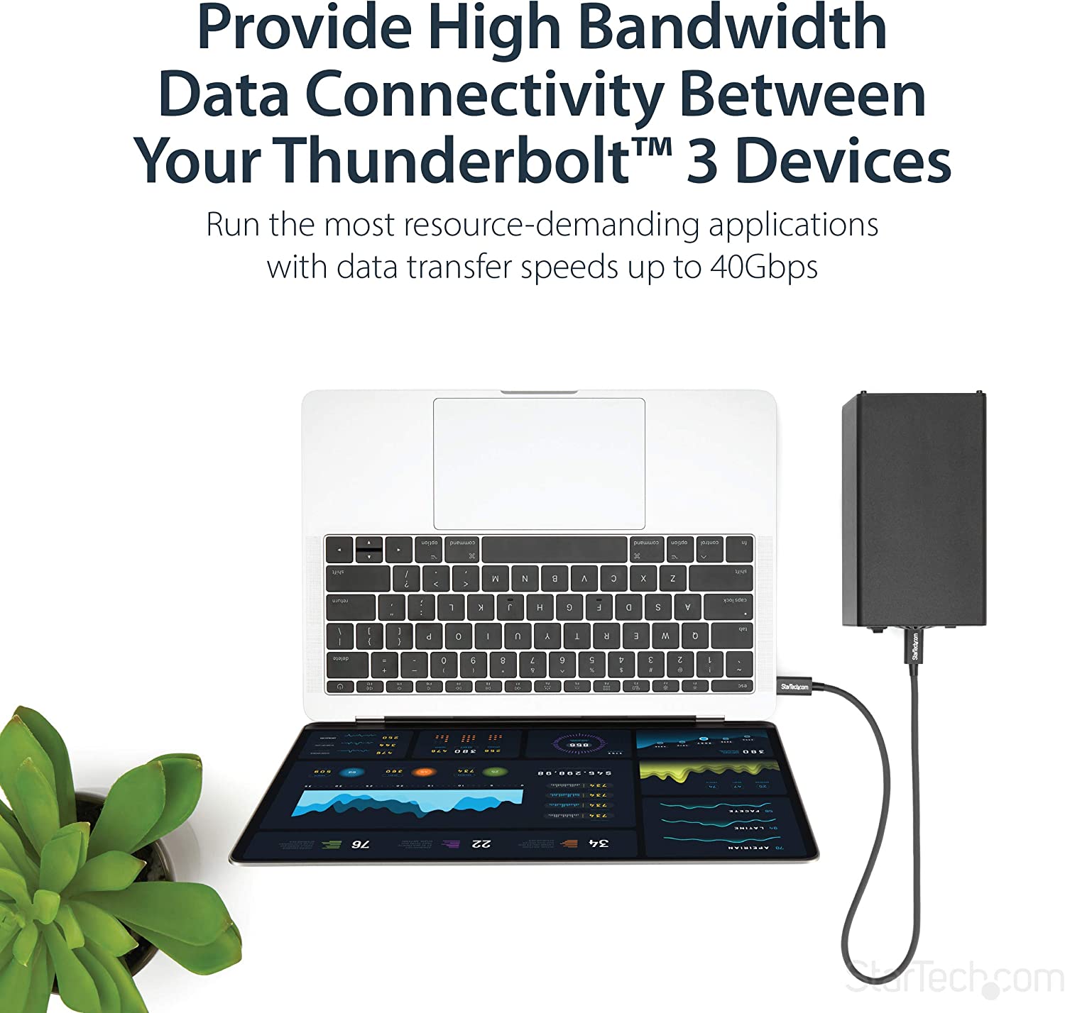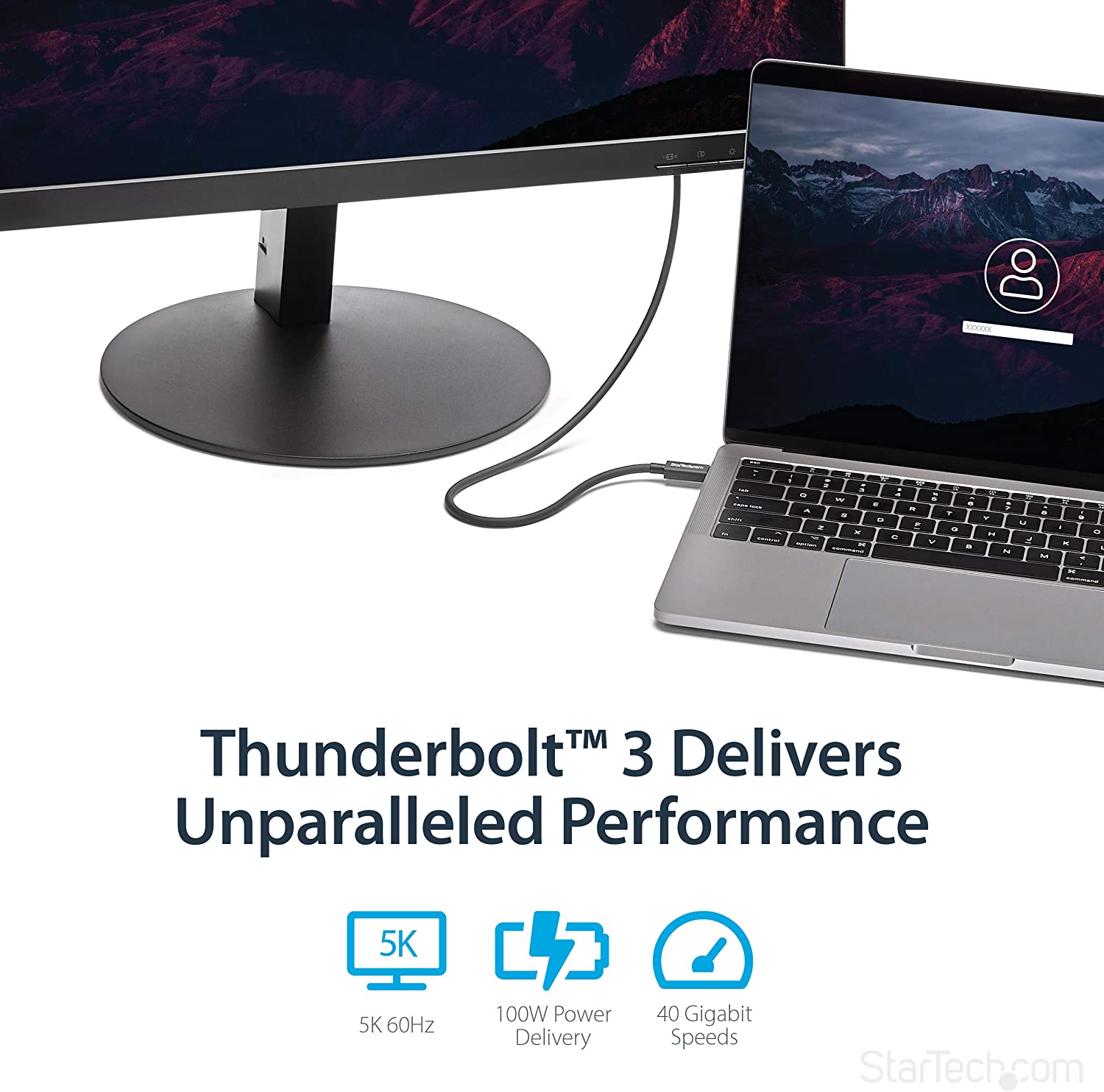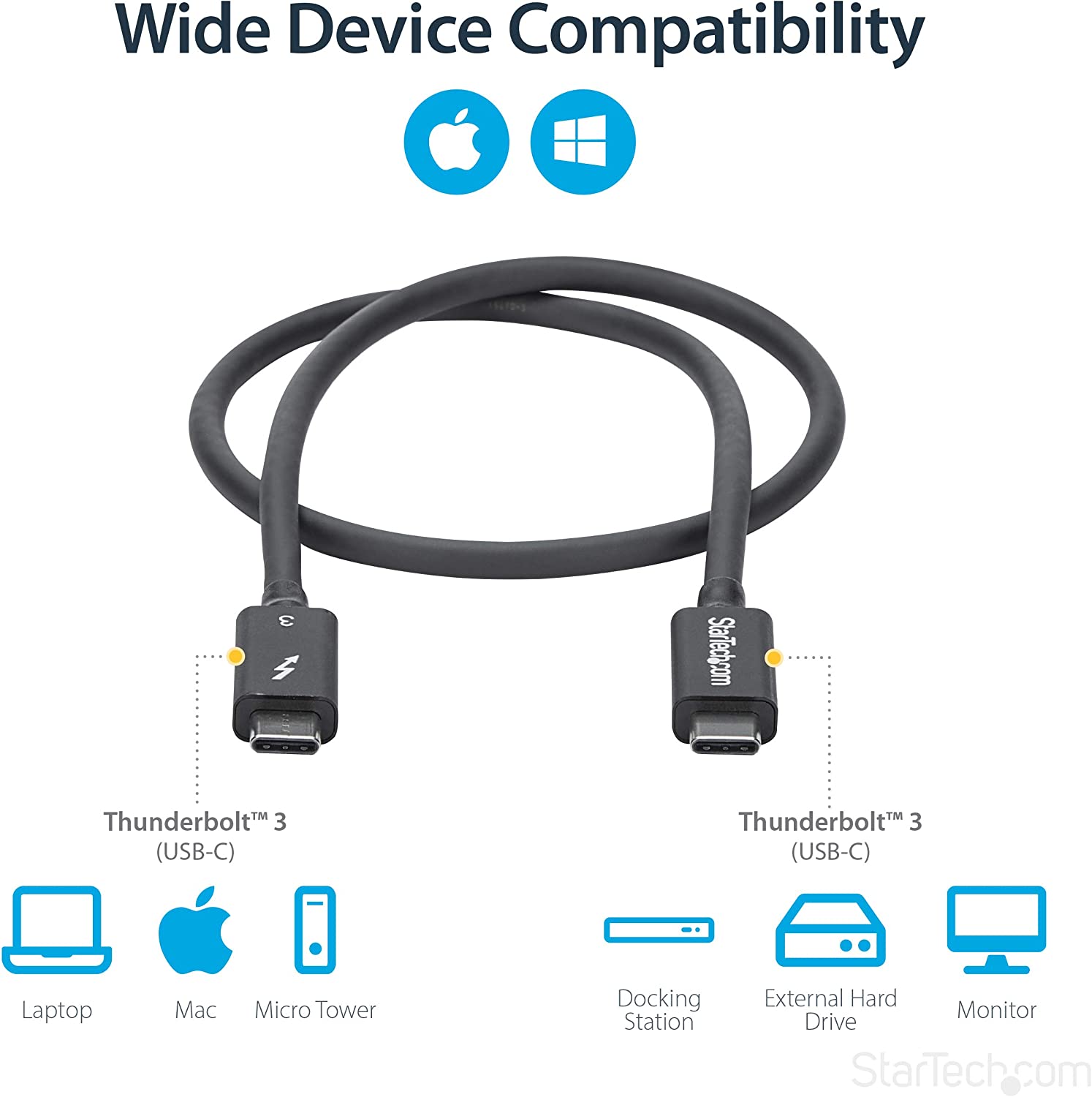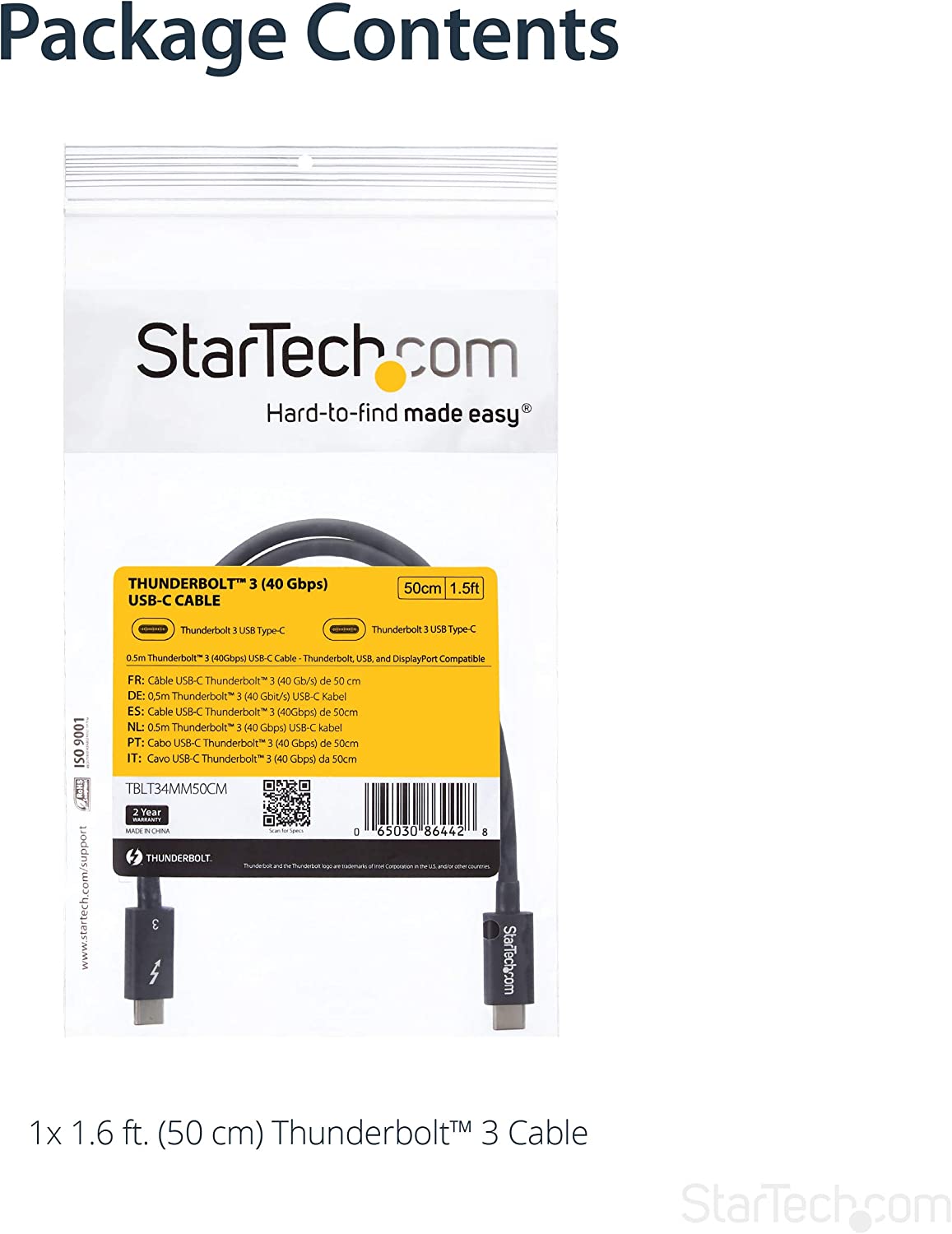 StarTech.com 40Gbps Thunderbolt 3 Cable - 1.6ft/0.5m - Black - 5k 60Hz/4k 60Hz - Certified TB3 USB-C Charger Cord w/ 100W Power Delivery (TBLT34MM50CM) 1.5ft 40Gbps | Black