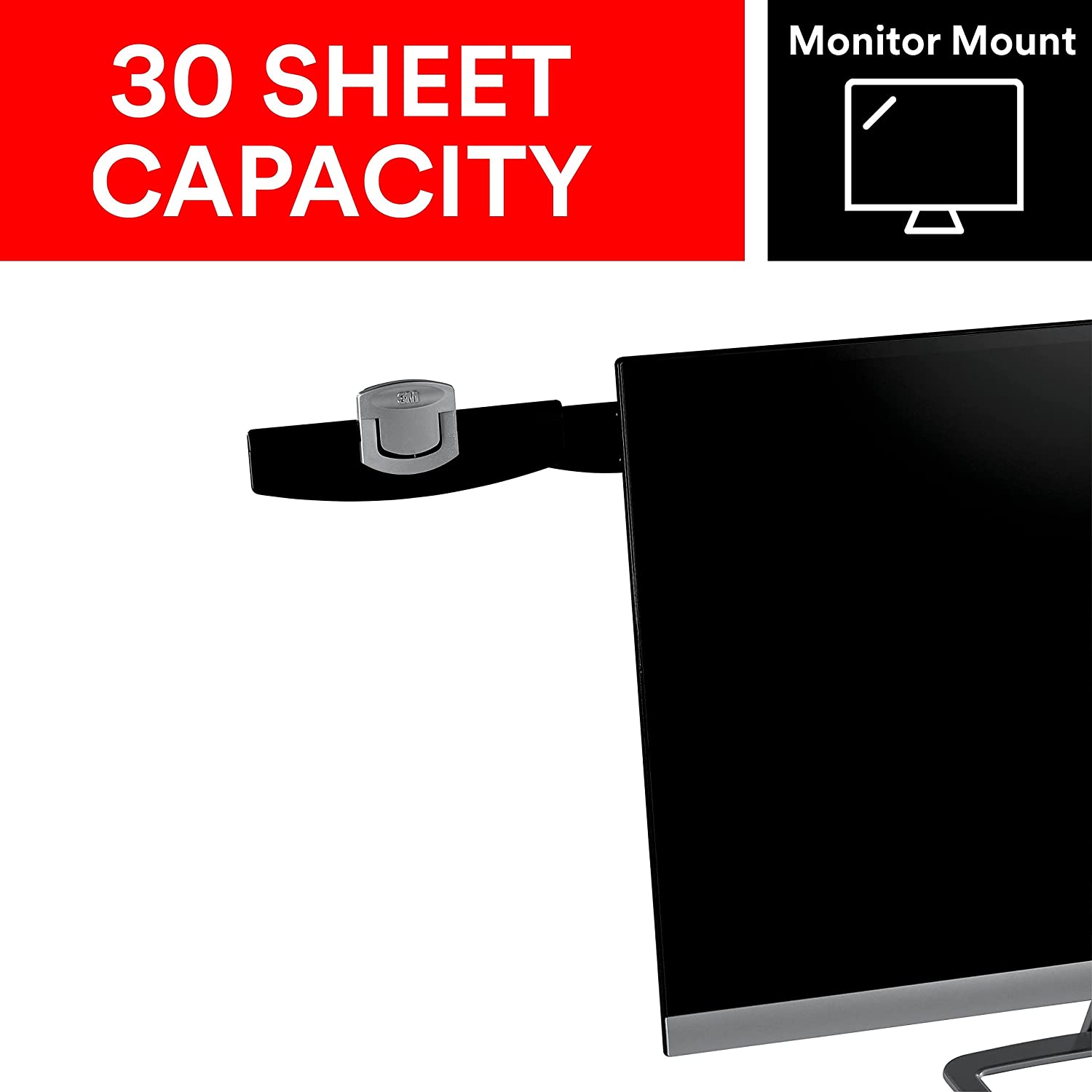 Document clip mounts to your monitor with Command Adhesive Strip, freeing up desk space and reducing movement of eyes, neck and shoulders minimizing strain and increasing comfort. Dual-function clip lets you slide in up to 5 sheets one-handed or securely clip up to 30 sheets. 30-day warranty.