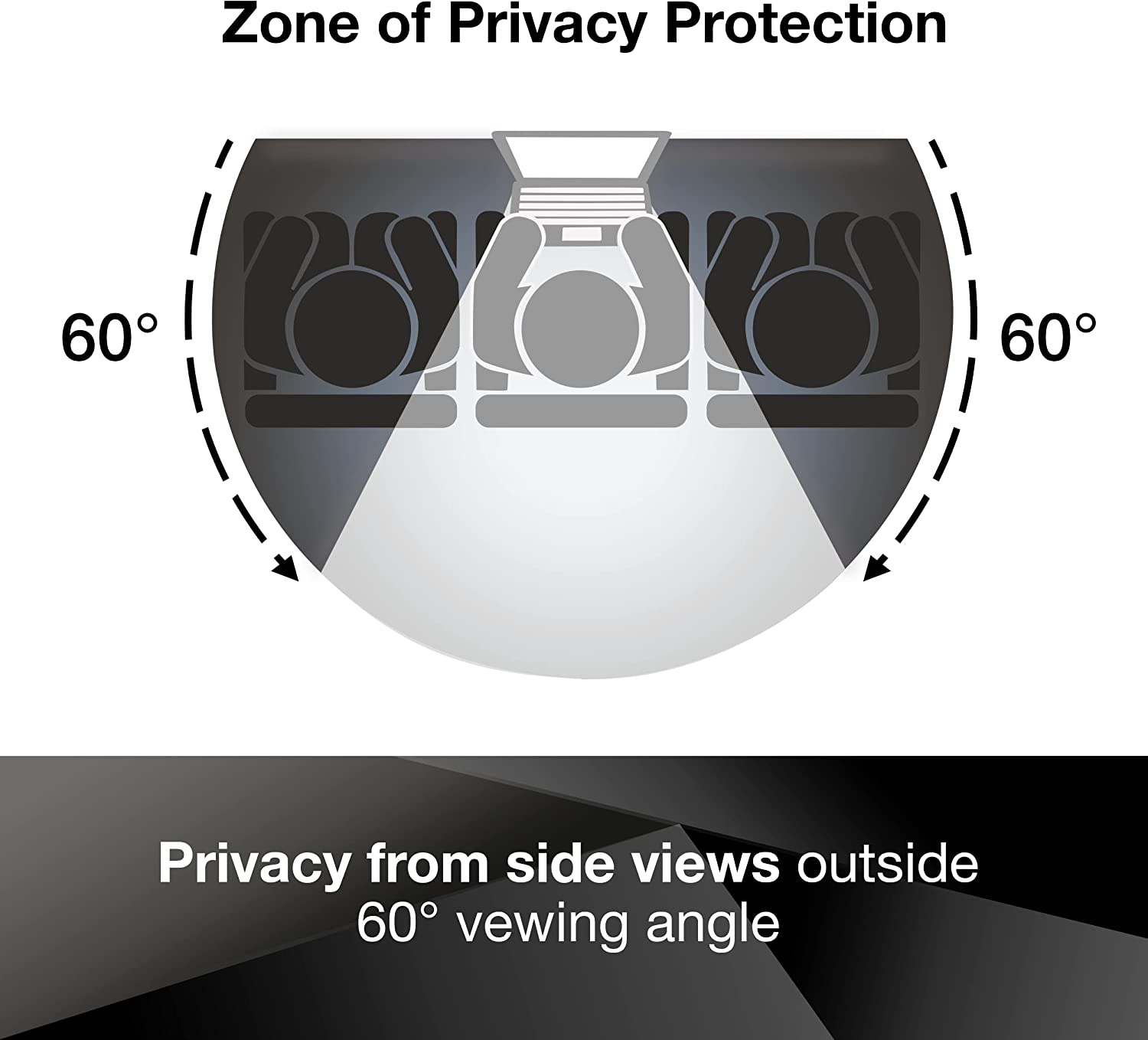 3M Privacy Filters keep confidential information private. Only persons directly in front of the monitor can see the image on screen; others on either side of them see a darkened screen.