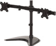 Free-standing design allows dual monitors to be used in spaces that do not allow a clamp or grommet mount. Create a multi-display productive workspace and position your monitors to reduce eye, neck and shoulder strain. The low profile, and weighted base provides enhanced stability. Minimize clutter with the intuitive cord management system. Holds 30” monitors up to 17 lbs. Meets VESA mounting standards.