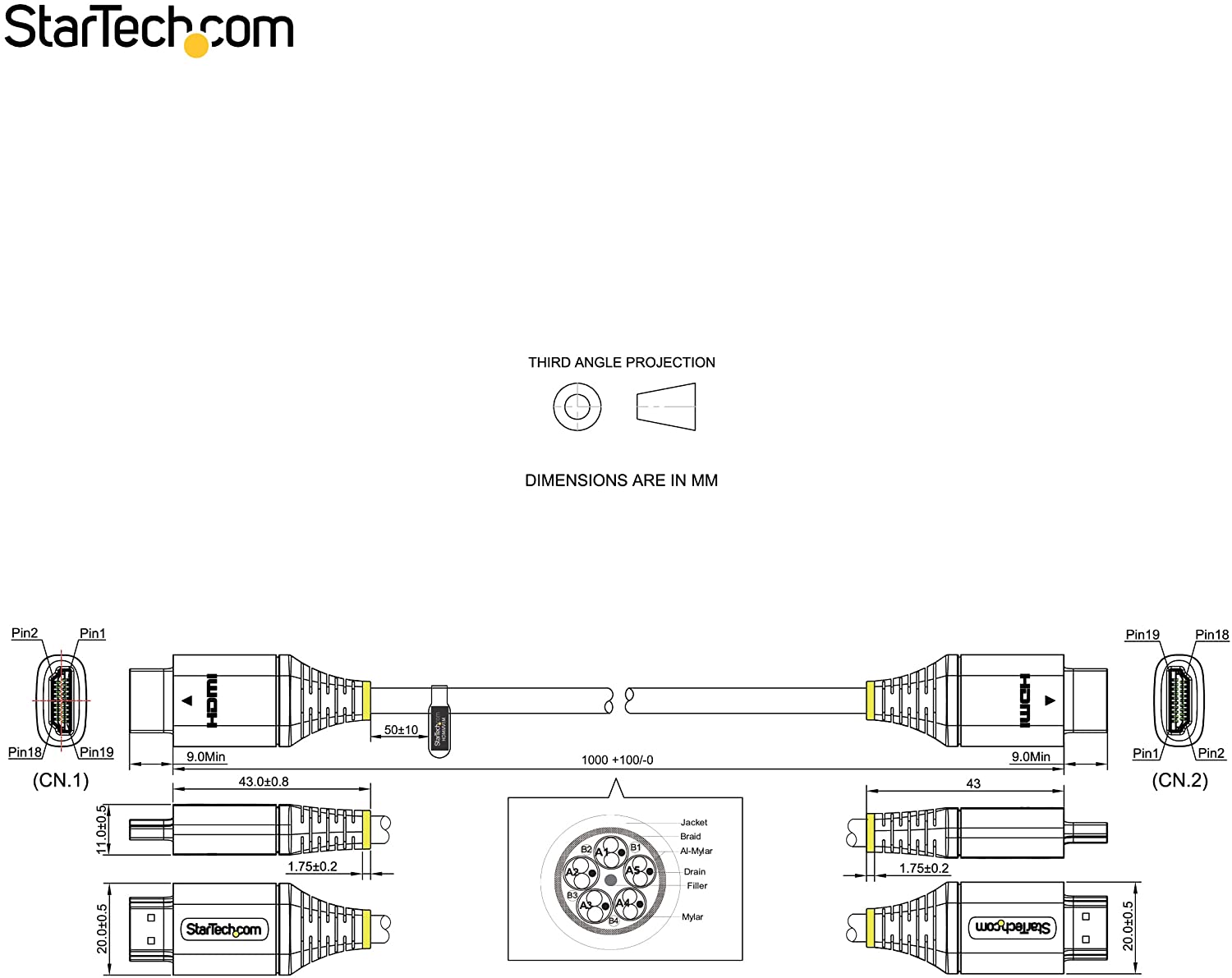 This 3.3 ft. (1 m) Premium High Speed HDMI 2.0 Certified Cable withstands the daily demands of connecting your HDMI devices. Tested to endure strenuous wear and tear, this durable cable is a must-have for both business and consumer applications. Experience the latest that HDMI 2.0 has to offer This high performance 4K cable supports resolutions of up to 4K at 60Hz (3840x2160p) and bandwidths of up to 18Gbps. It also supports HDR10 (High Dynamic Range) and Dolby Vision for higher contrast ratio and vivid colors. Plus, ARC (Audio Return Channel) has up to 32 uncompressed 5.1 and 7.1 digital audio channels to support DTS-HD Master Audio™, DTS:X®, Dolby® TrueHD, Dolby Atmos® for high quality sound. With high resolutions, increased speeds, sharper images, and crystal-clear audio, you can expect an enhanced video experience. The cable is guaranteed to provide the very best HDMI 4K performance available today. It's the perfect cable for creating the ultimate home theater or for providing lifelike digital signage. This cable works with all 4K ready devices and is also backward compatible with previous HDMI specifications. Provide superior connections with Premium High Speed certification The cable has undergone rigorous compliance testing and is certified by an HDMI Authorized Test Center to ensure it supports the high bandwidth enabled features it promises. An EMI test is also performed to ensure the cable minimizes interference with wireless signals. Cable Key Features Aluminum-mylar foil with braided shielding improve EMI protectionLong lasting flexible TPE jacket & strain relief (TPE is non-toxic & halogen free for environmental sustainability) Connector Key Features Corrosion-free gold-plated connectors ensure premium video quality & enhanced reliabilityTested to withstand 10,000+ insertions The HDMMV1M is ba
