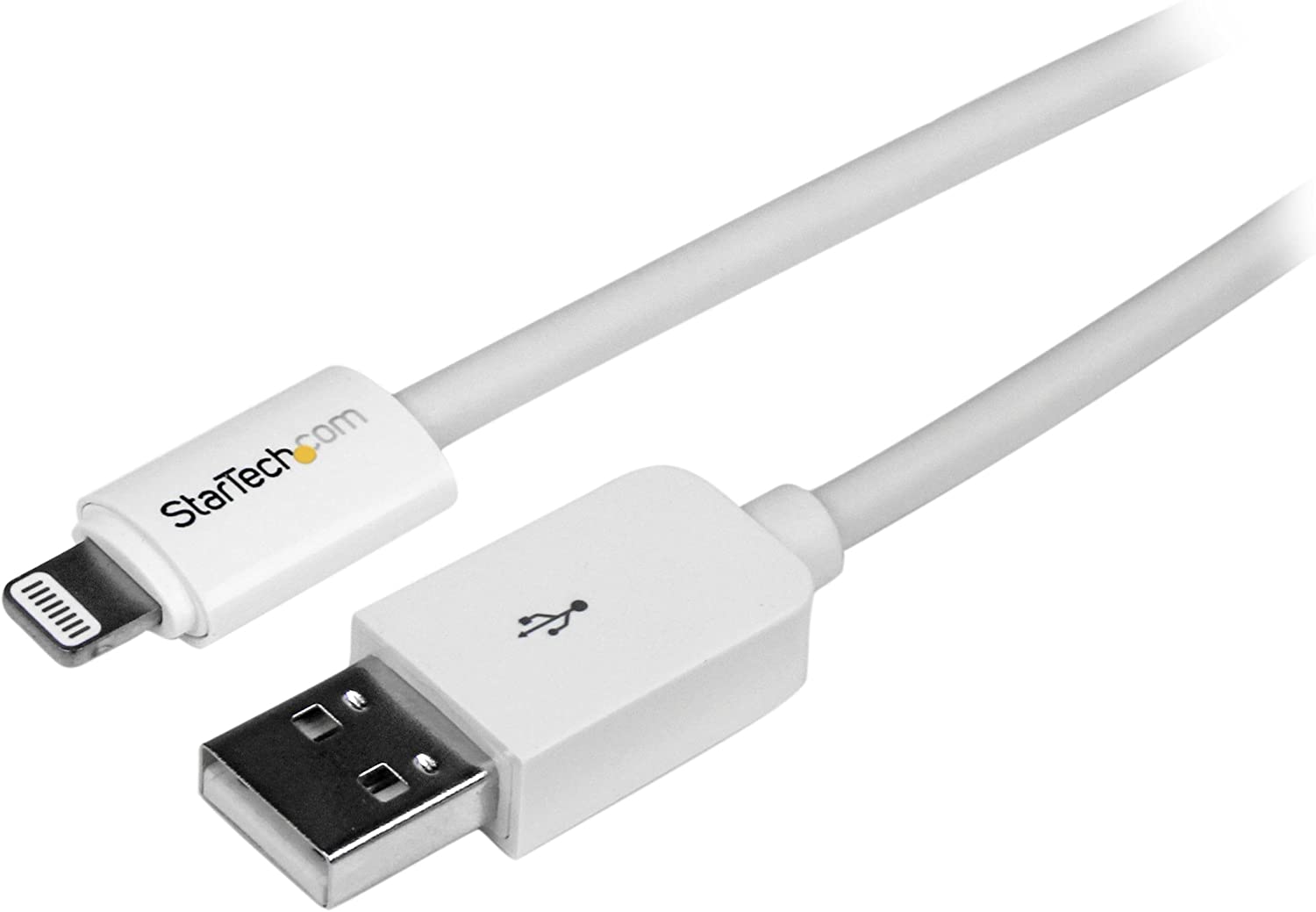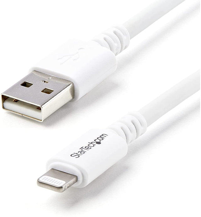 StarTech.com 3m (10ft) Long White Apple 8-pin Lightning Connector to USB Cable for iPhone / iPod / iPad - Charge and Sync Cable (USBLT3MW) 10ft White