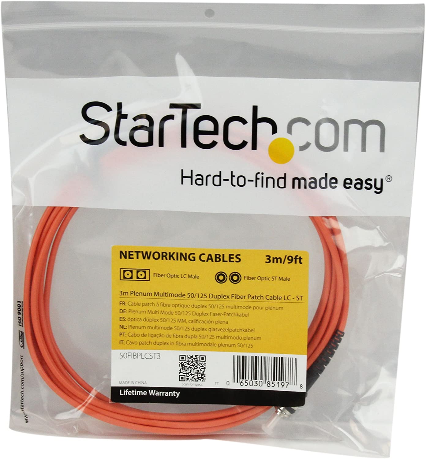 StarTech.com 3m Fiber Optic Cable - Multimode Duplex 50/125 - OFNP Plenum - LC/ST - OM2 - LC to ST Fiber Patch Cable (50FIBPLCST3) 10 ft / 3m LC-ST is backordered and will ship as soon as it is back in stock.