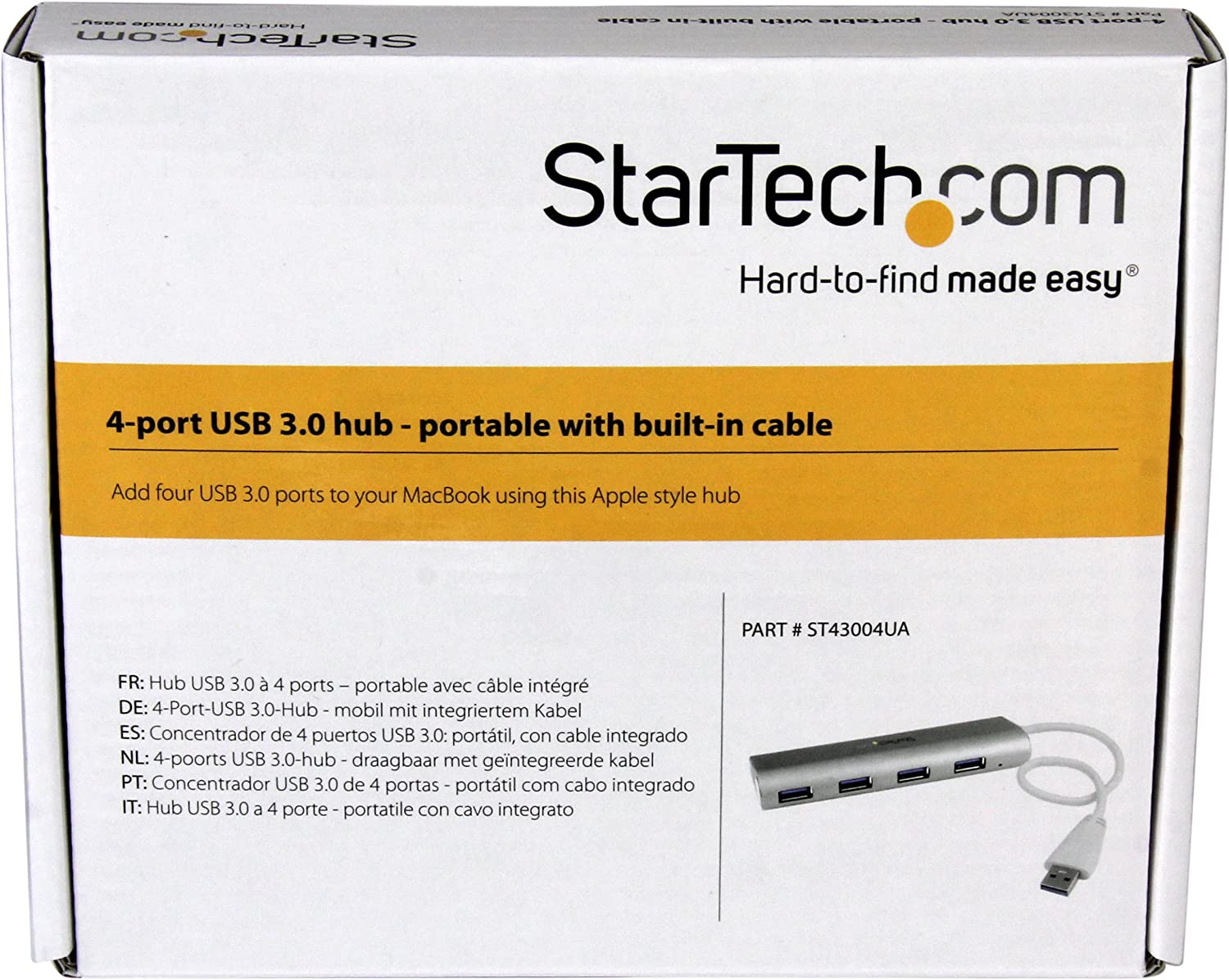 StarTech.com 4 Port Portable USB 3.0 Hub with Built-in Cable - Aluminum and Compact USB Hub (ST43004UA) Aluminum 4 x USB-A with Built in Cable