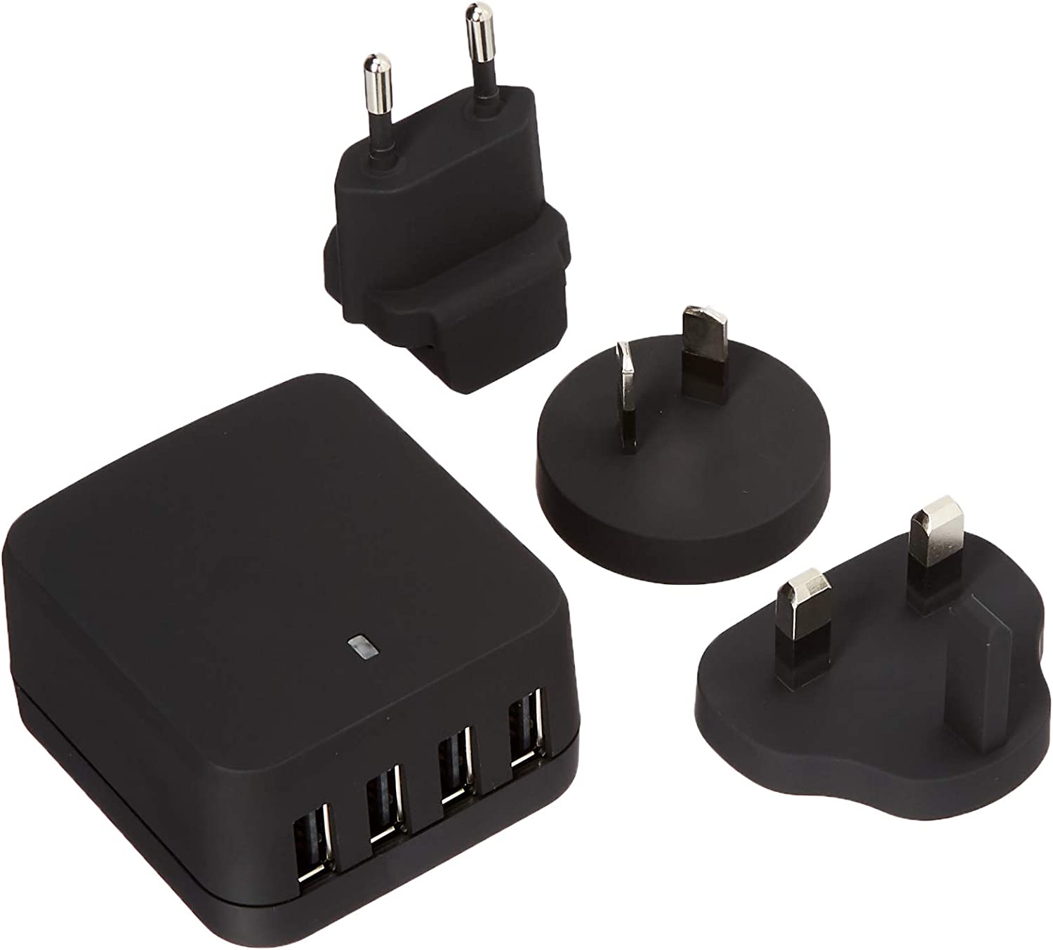 This 4-port international power adapter lets you keep all your mobile devices charged and ready to use, regardless of where you’re located. The travel adapter includes a universal power adapter, which lets you plug into any electrical socket almost anywhere in the world. The portable travel USB wall charger features a folding North American plug that tucks away nicely to fit inside your laptop bag or other carrying case. The multi-port universal travel adapter features Smart IC technology, which enables it to identify what type of device is connected to each port and delivers the optimal charge that's specific to each device. The USB wall charger can deliver 34 watts in total, sharing 6.8 amps of power between all four ports. The world travel adapter supports USB Battery Charging Specification 1.2, which ensures compatibility with a broad range of mobile devices. Consolidating your USB devices onto a single multi-port travel USB wall charger offers a more efficient solution and saves space. The USB charger built-in safety measures to ensure that all your devices are protected against damage from overheating, overvoltage, overcurrent or short circuiting. If the 34-watt limit is exceeded, the power being sent to the connected devices will turn off and the USB wall charger will reset itself until the load is reduced to safe levels. The travel charger is backed by our 2-year warranty to ensure dependable performance.