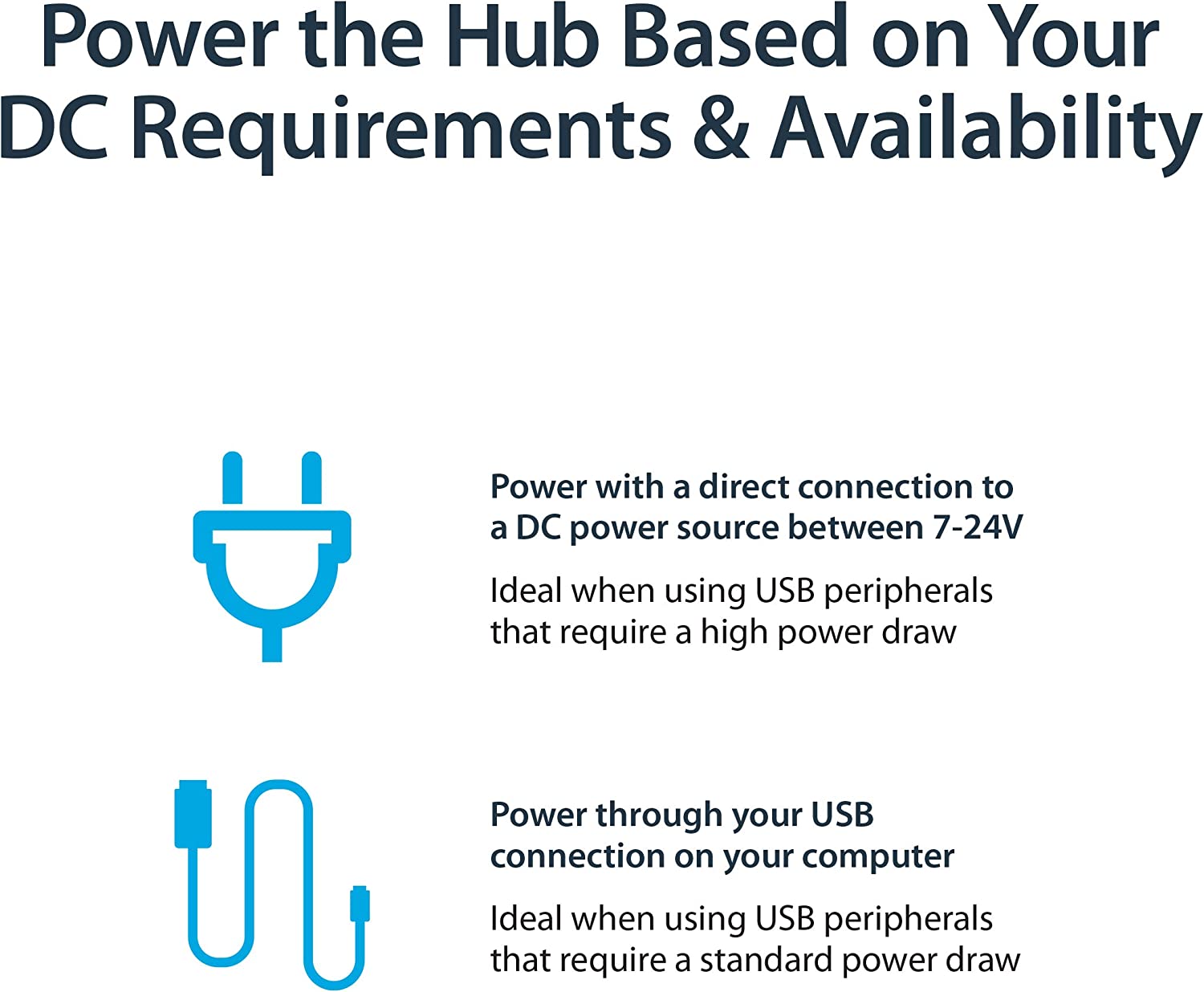 Thisindustrial USB hubdelivers reliable performance with a metal, heavy-duty housing.Itsupports wide-range 7-24V DC terminal block input,giving you theflexibility to power the hub as required, based on your own power input capabilities.