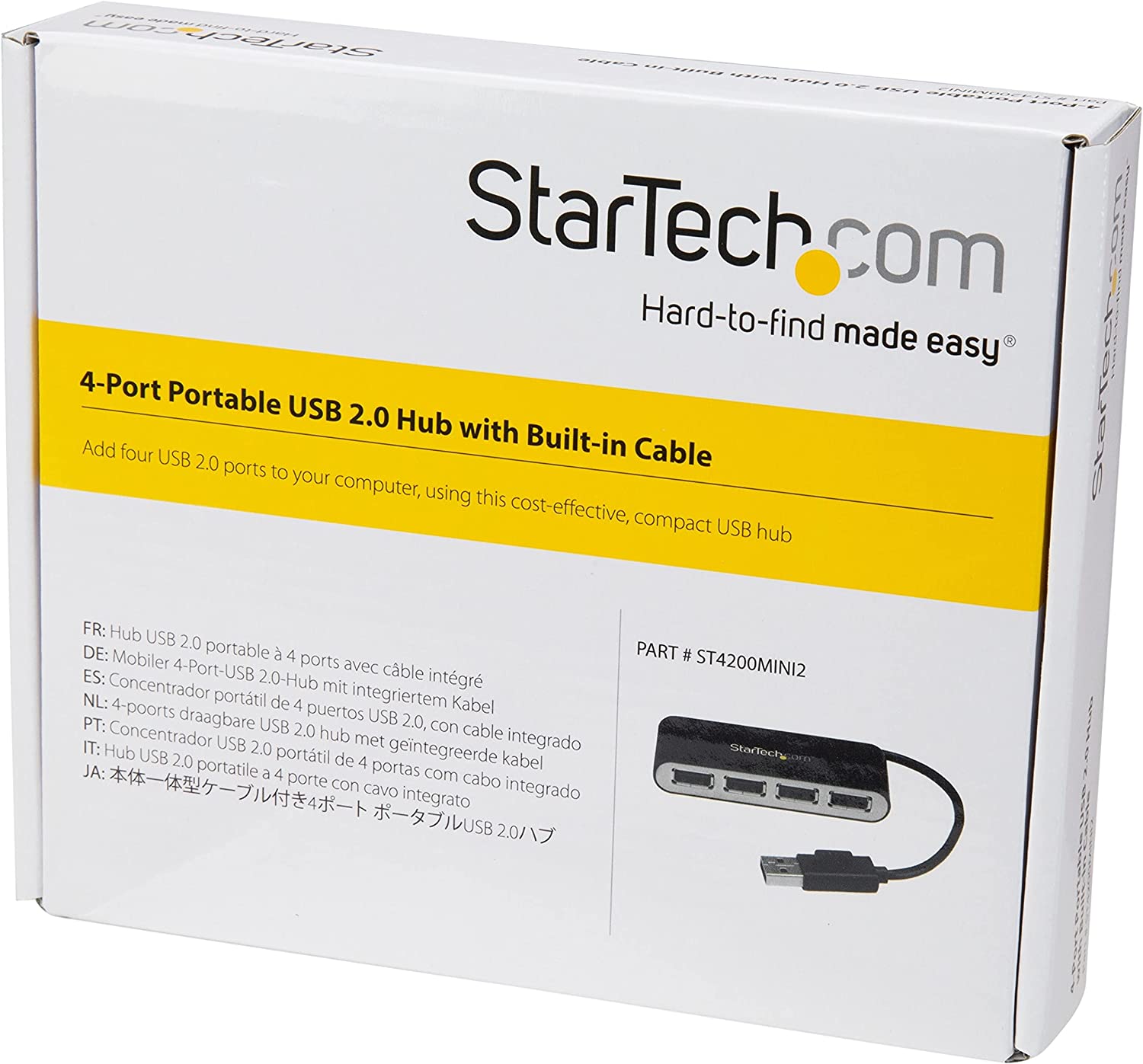 StarTech.com 4 Port USB 2.0 Hub - USB Bus Powered - Portable Multi Port USB 2.0 Splitter and Expander Hub - Small Travel USB Hub (ST4200MINI2)