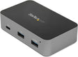 Adds one USB-C and three USB-A ports (including one fast-charge BC 1.2 port) to your Mac, Windows, Linux or other USB-C laptop or USB-C enabled tablet (ie. iPad Pro) USB hub is self-powered with included universal power adapter USB Type-C hub supports USB 3.1 Gen 2 data transfer rates up to 10 Gbps Mountable with StarTech.com dock mounts for flexible wall and desktop installations Compact design with an extended host cable of 3.3’ (1 m) to accommodate a variety of setups Plug-and-play installation with no drivers required Expand the connectivity of your USB-C laptop with this new generation USB-C 3.1 Gen 2 hub offering 10 Gbps supporting greater bus bandwidth to connected devices and faster data transfer speeds. This self-powered 4-Port USB-C hub plugs into the USB Type-C™ or Thunderbolt™ 3 port on your device, adding one USB-C port and three USB-A ports, so you can quickly connect more USB devices. This compact, lightweight USB-Type-C hub is a convenient and compact addition to your laptop setup. The hub is self-powered and includes a universal power adapter to provide better support of USB devices, such as external storage, that may draw more power. The USB-C host cable is detached and with an extended length of 3.3’ (1 m), it provides more flexibility for longer reach connection requirements and plug and play installation. For added flexibility and security, the mini hub features mounting holes to work with StarTech.com dock mounts such as SSPMSVESA or SSPMSUDWM. With ports for both USB-C and USB-A peripherals, this hub is backward compatible supporting both legacy and new USB devices. It features one always-on USB-A fast-charge port which supports two modes of operation: You can connect video capture devices, portable flash drives, and external hard drives, with fast data transfer speeds of up to 10 Gbps. This 4 port USB Type-C hub enhances your productivity, giving you the connections you need while you work or travel. StarTech.com conducts thorough compatibility and performance testing on all our products to ensure we are meeting or exceeding industry standards and providing high-quality products to IT Professionals. Our local StarTech.com Technical Advisors have broad product expertise and work directly with our StarTech.com Engineers to provide support for our customers both pre and post-sales. HB31C3A1CS is backed by a StarTech.com 2-year warranty and free lifetime technical support. Specifications Warranty Information Warranty 2 Years Connector(s) 1 - Connector Type(s) USB 3.1 USB Type C (10 pin, Gen 2, 10 Gbps) USB 3.1 USB Type C (10 pin, Gen 2, 10 Gbps) 3 - Connector Type(s) USB 3.1 USB Type-A (9 pin, Gen 2, 10 Gbps) Environmental Humidity 0% to 95% (non-condensing) at 25°C Operating Temperature 0 to 50°C Storage Temperature -20 to 70°C Hardware USB-C Device Port(s) Yes USB-C Host Connection Yes Ports 4 Interface USB 3.1 Gen 2 Bus Type USB 3.1 Gen 2 Industry Standards USB 3.2 Gen 2 - Backwards compatible with USB 3.0, 2.0, and 1.1 Chipset ID Realtek - RTS5423 Indicators 1 - LED Indicators Green: Power and Link Indicator Packaging Information Package Height 2.0 in Package Length 8.7 in Shipping (Package) Weight 1.0 lb Package Width 5.9 in Performance Maximum Data Transfer Rate 10 Gbps Type and Rate USB 3.1 Gen 2 - 10 Gbit/s UASP Support Yes Supported Charging Modes Charging Downstream Port (CDP) Dedicated Charging Port (DCP) Supported Charging Outputs BC 1.2 (1.5A) Apple 1A Apple 2.4A Physical Characteristics Color Black & Space Gray Form Factor Desktop Product Height 1.0 in Product Length 3.9 in Weight of Product 3.0 oz Product Width 2.4 in Material Aluminum and Plastic Cable Length 3.3 ft Power Power Source AC Adapter Included Input Voltage 100 - 240 AC Input Current 0.8A Output Voltage 12V DC Output Current 2A Center Tip Polarity Positive Plug Type M Power Consumption (In Watts) 24W Software OS Compatibility OS Independent What's in the Box 1 - Included in Package USB-C Hub Universal Power Adapter 3.3 ft USB-C Host Cable 4 - Included in Package Power Adapter Clips (NA/JP, UK, EU, ANZ)