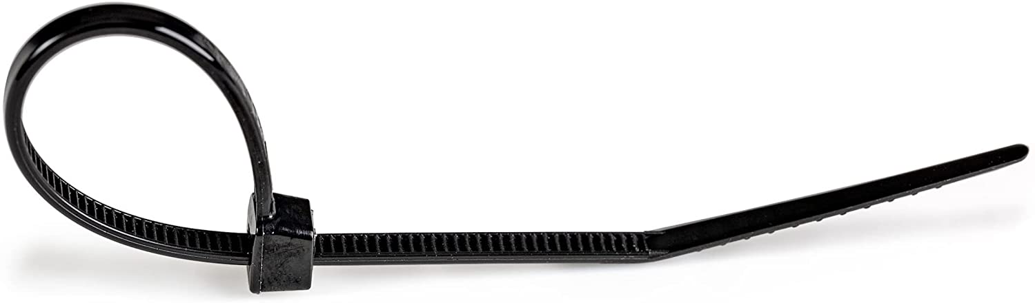 1000 Pack Small 4" 101.6 mm Black Nylon 66 94V-2 Fire & UL Rated TAA UL. These Small cable ties enable you to conveniently bundle and secure multiple cables, to route and organize them. 1000 Black cable ties are included, ensuring you'll have plenty on hand. Keep Cables Organized These plastic electrical cable wraps are 4" (101.6 mm) in length securing cable bundles up to 0.9" (22.9 mm) in diameter. They're quick and easy to install or remove, with adjustable tension and a basic one-piece design- perfect for organizing network cables, power cables, or other cables at your home or office workstation. Industrial Strength Made of durable Nylon 66 material, these cable ties are tough and flexible. They've been rigourously tested to support up to 18 lbs 8.2 kg of weight & are UL94 V-2 fire rated, UL Approved, and CE & Lloyd's Register Certified. Available in Different Lengths and Colors To suit any application, offers a wide selection of these cable ties in different lengths and colors: 100 Pack- 4" (101.6 mm) Black Cable Ties (CBMZT4B) 100 Pack- 4" (101.6 mm) White Cable Ties (CBMZT4N) 1000 Pack- 4" (101.6 mm) Black Cable Ties (CBMZT4BK) 1000 Pack- 4" (101.6 mm) White Cable Ties (CBMZT4NK) 100 Pack- 6" (152.4 mm) Black Cable Ties (CBMZT6B) 100 Pack- 6" (152.4 mm) White Cable Ties (CBMZT6N) 1000 Pack- 6" (152.4 mm) Black Cable Ties (CBMZT6BK) 1000 Pack- 6" (152.4 mm) White Cable Ties (CBMZT6NK) 100 Pack- 8" (203.2 mm) Black Cable Ties (CBMZT8B) 100 Pack- 8" (203.2 mm) White Cable Ties (CBMZT8N) 1000 Pack- 8" (203.2 mm) Black Cable Ties (CBMZT8BK) 1000 Pack- 8" (203.2 mm) White Cable Ties (CBMZT8NK) 100 Pack- 10" (254 mm) Black Cable Ties (CBMZT10B) 100 Pack- 10" (254 mm) White Cable Ties (CBMZT10N) 1000 Pack- 10" (254 mm) Black Cable Ties (CBMZT10BK) 1000 Pack- 10" (254 mm) White Cable Ties (CBMZT10NK) These cable wraps are backed by a Lifetime warranty and free 24/5 technical support. StarTech.