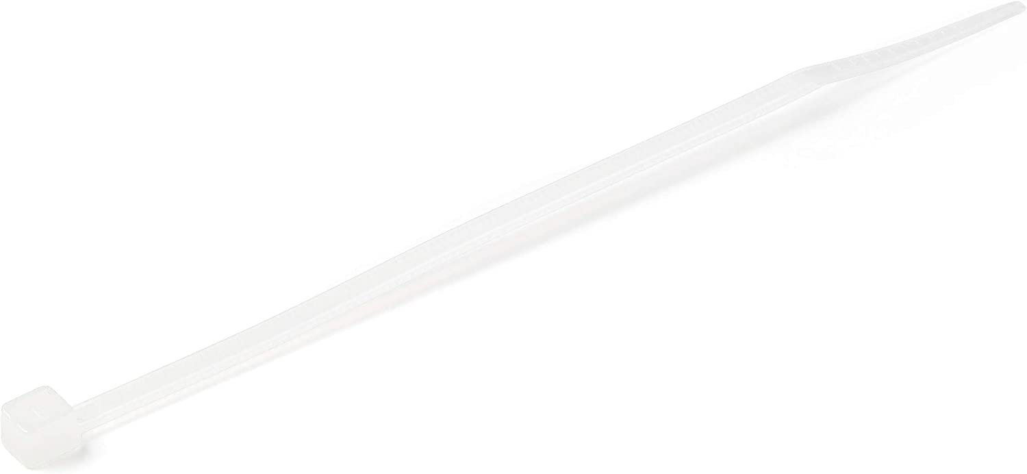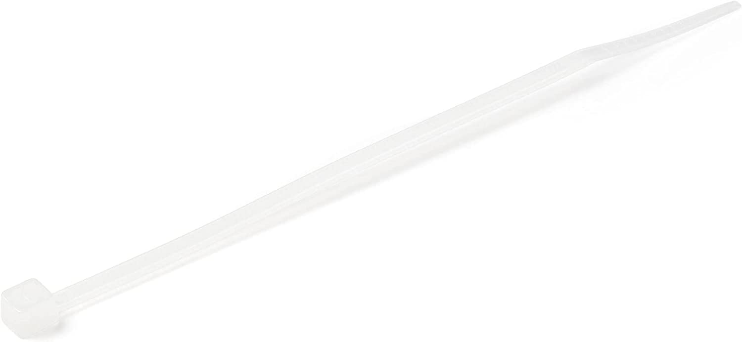 StarTech.com 4"(10cm) Cable Ties - 1/16"(2mm) Wide, 7/8"(22mm) Bundle Diameter, 18lb(8kg) Tensile Strength, Nylon Self Locking Zip Ties with Curved Tip - 94V-2/UL Listed, 1000 Pack - White 4 in | 18 lbs (8kg) Standard w/Self Locking 1000 is backordered and will ship as soon as it is back in stock.