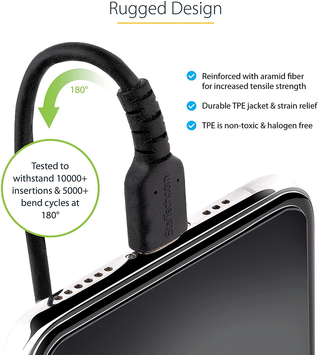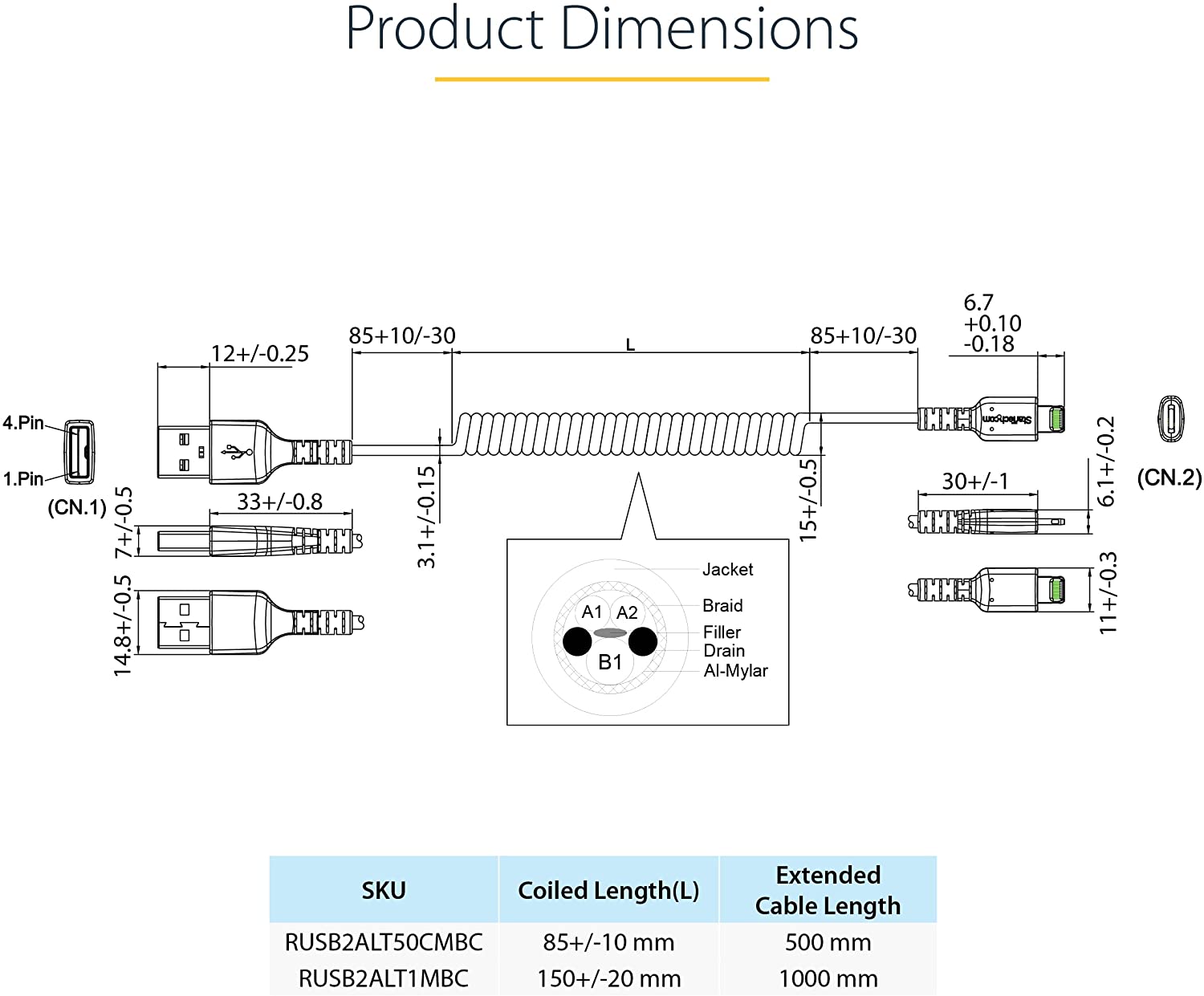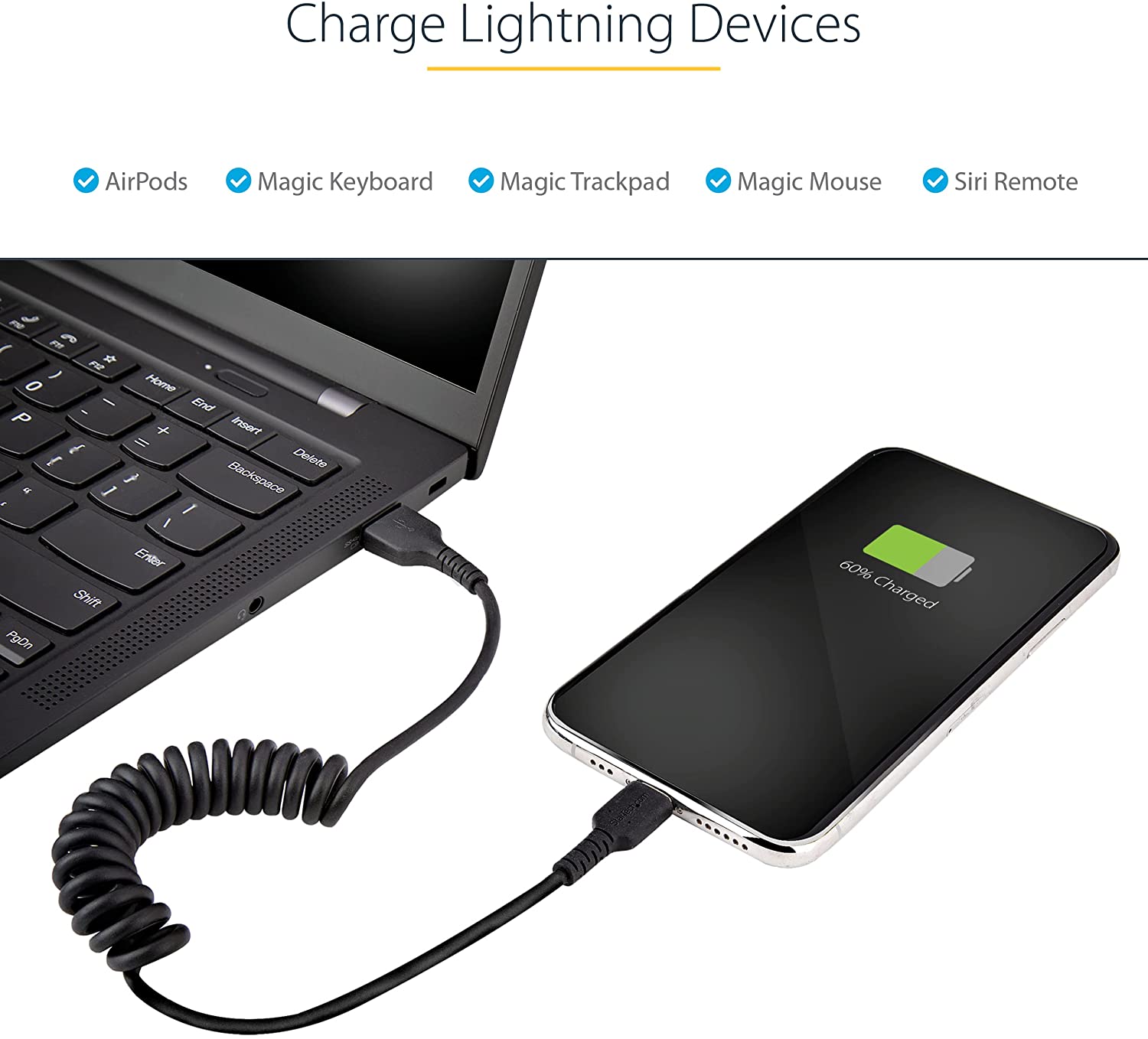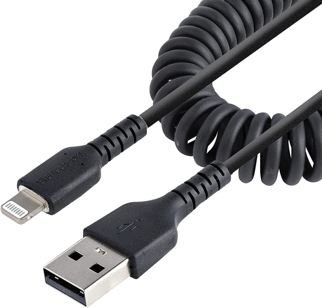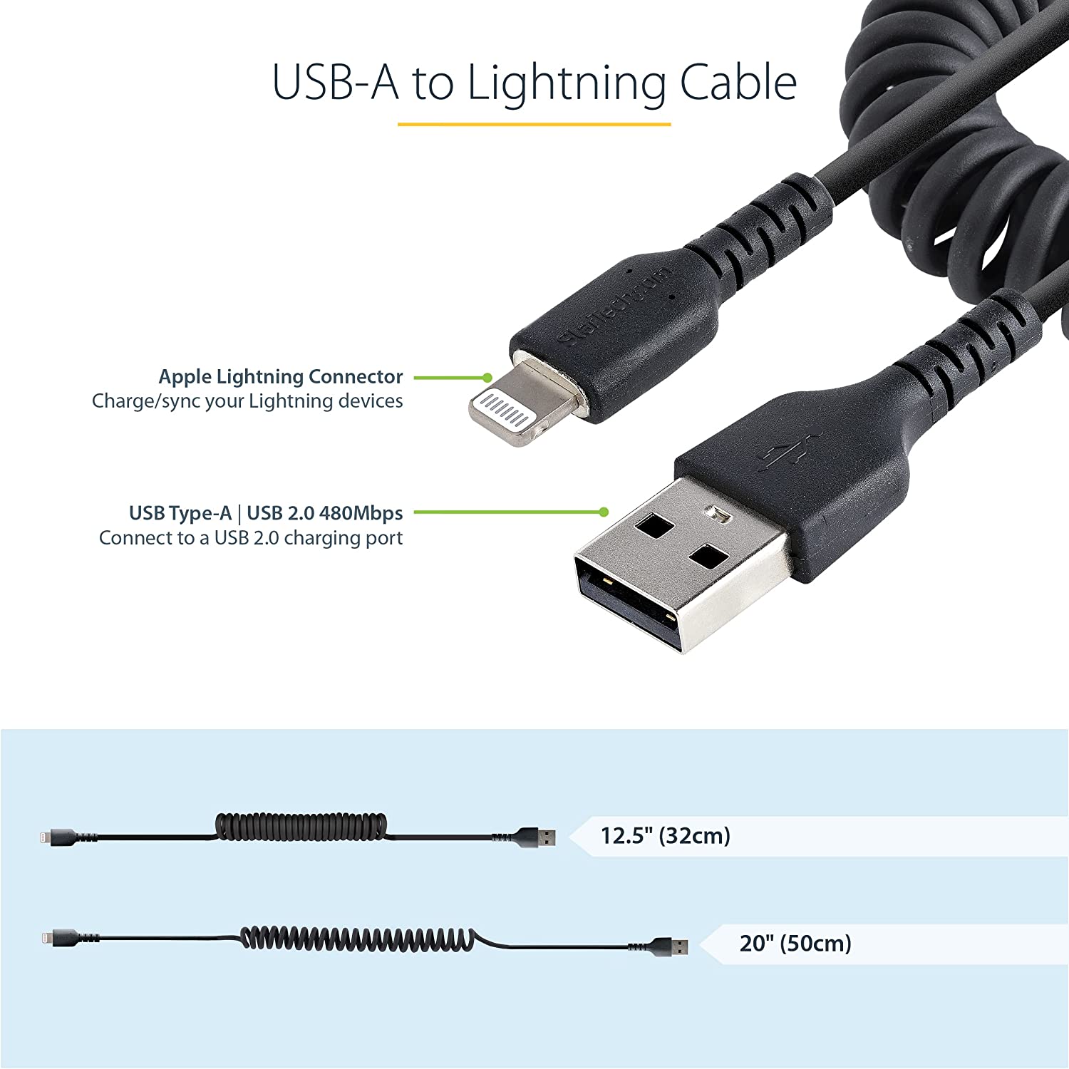 StarTech.com 50cm (20in) USB to Lightning Cable, MFi Certified, Coiled iPhone Charger Cable, Black, Durable TPE Jacket Aramid Fiber, Heavy Duty Coil Lightning Cable (RUSB2ALT50CMBC) 50cm / 20 in USB-A is backordered and will ship as soon as it is back in stock.