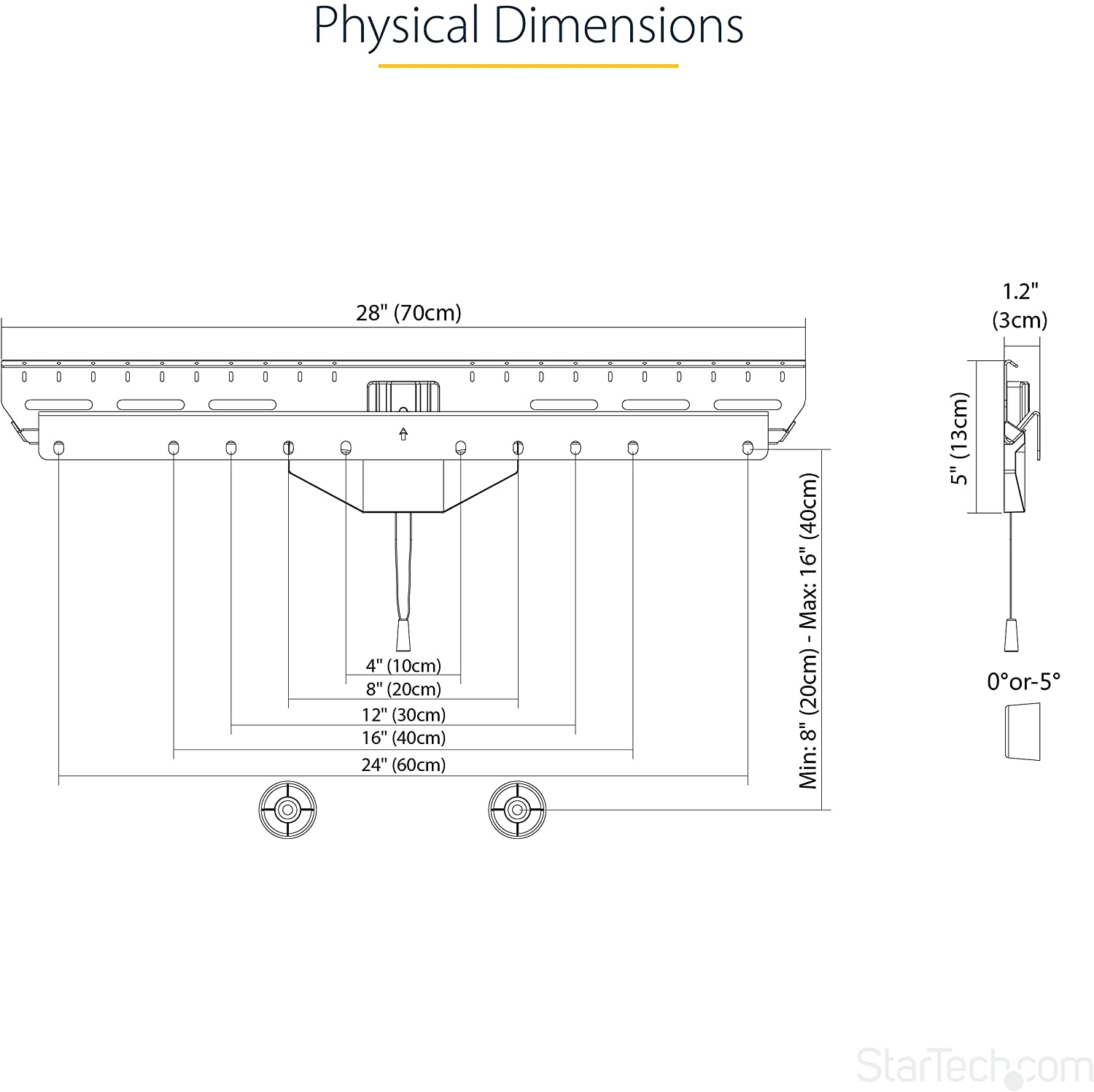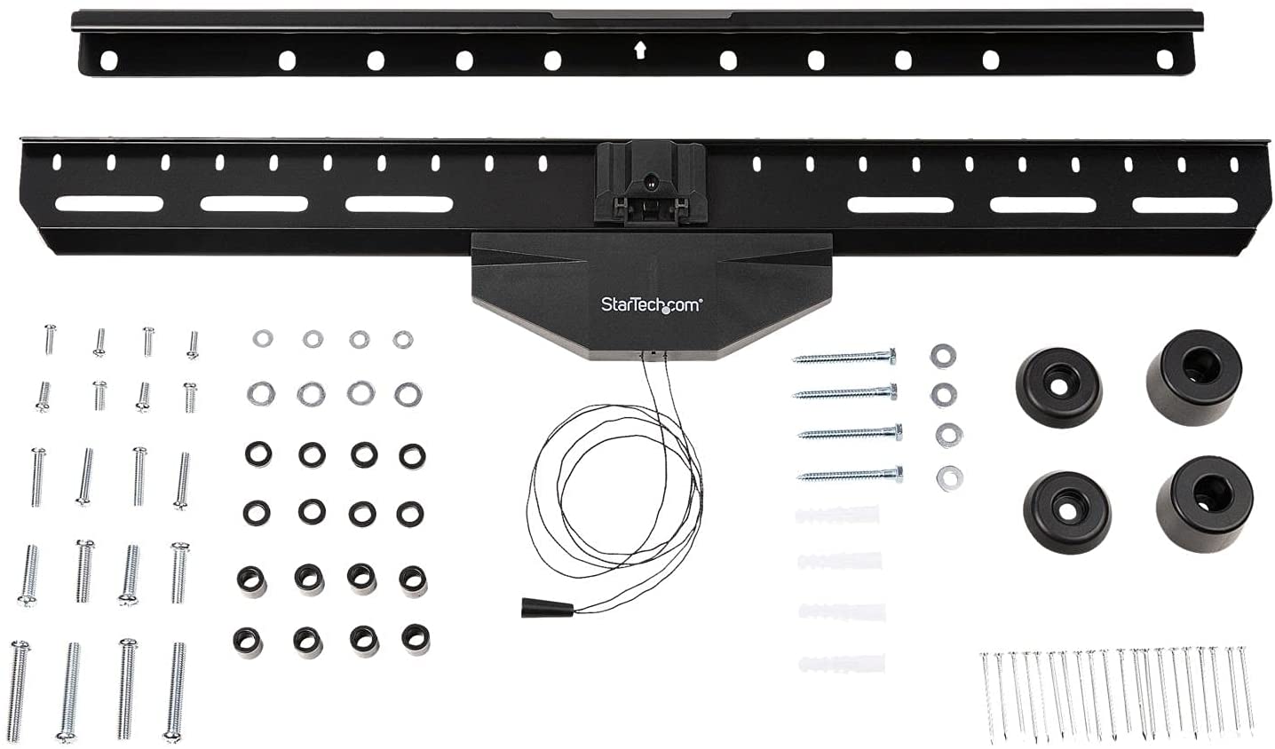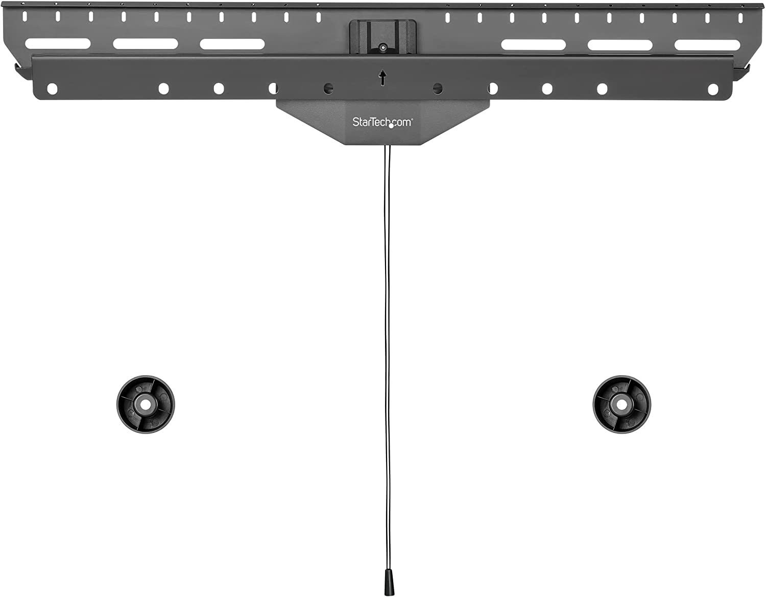 This No-Stud TV Wall Mount enables you to easily and securely mount your display from 37" up to 80" to walls without the need to align the bracket with wall studs. Its steel frame supports displays up to 110lb / 50kg in weight and provides the ability to tilt your display to ensure your application and the ideal viewing angle are aligned. Easy and Flexible Installation The studless design of this Universal TV Wall Mount makes it easy for you to mount your TV to a drywall or plaster wall in any boardroom, office, or classroom setup. Simply choose the best mounting location and secure the mounting bracket into the wall (with included nails); no need to drill or look for wall studs. The included Automatic Spring Lock lets you conveniently mount and secure your TV in place. Low Profile Slim Design This Low Profile TV Wall Mount is perfect for applications like digital signage, where space and aesthetics are important. With a 1.2" profile from the wall, this Wall Mount TV Hanger provides a professional and clean look. Tilt your Display The Hanging TV Wall Mount lets you angle your TV towards your audience. The included wall-mounted spacers give you a choice to change the tilting angle (0°/ -5°) for a comfortable viewing experience. The FPWHANGER is backed by a StarTech..