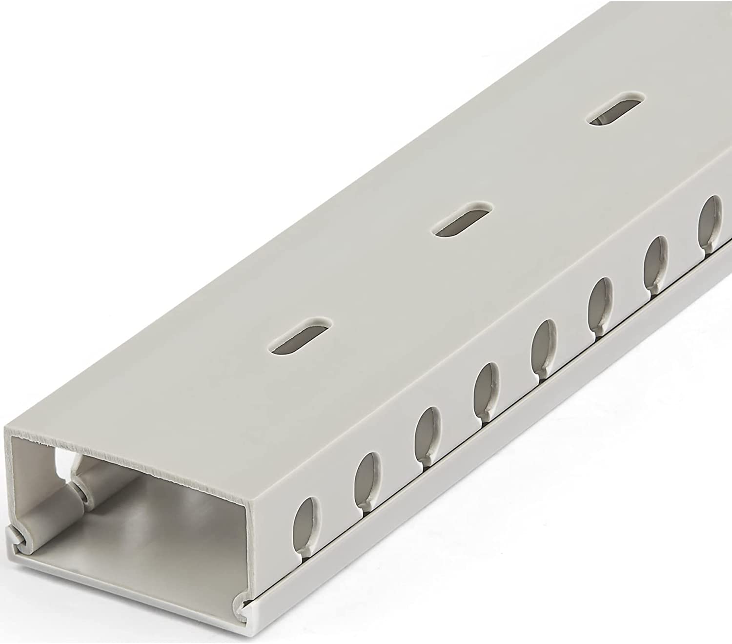 This 78 in. (2 m) slotted cable management raceway neatly routes cables in your office or server room, while also concealing them to create a tidy and professional look. Professionally Organize & Route Cables with Slotted Design This cable management raceway protects cables from damage while neatly routing them in your office or server room. The raceway is 0.98 in. (25mm) Width: 1.97 in. (50mm), with 0.31 in. (8 mm) parallel slots (finger ducts) to pull cords through so you can easily organize and route cables in and out of the raceway. Hassle-Free Installation The raceway features mounting holes (15mm x 5mm) that enable you to easily mount the raceway to wood or drywall using screws (not included). Industrial Strength Made from self extinguishing PVC, that's sturdy and warp proof this network/power cable hider/concealer is M1 Rating NF fire resistant with a 186F (86C) Vicat softening point and are UL/94V-0 Rated. This cable management raceway is TAA compliant and backed by a StarTech.com Lifetime warranty and free 24/5 technical support. StarTech.com has been the IT professionals choice for over 30 years.