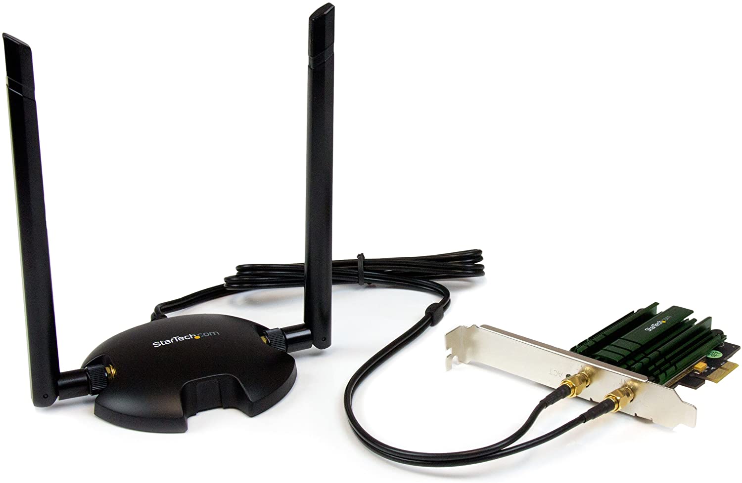 The PEX867WAC22 PCI Express AC1200 Wireless Network Adapter lets you add dual-band Wireless-AC connectivity to a desktop computer through a PCIe slot. With increased demand on network resources, this Wireless-AC adapter gives you exceptional speed and range for your office or home wireless network when paired with an 802.11ac router. This dual-band WiFi adapter supports maximum data rates of up to 867 Mbps on the 5GHz band (3x the speed of Wireless-N), plus up to 300 Mbps on the 2.4GHz band, making it the perfect solution for applications like HD video streaming, online conferencing, file transfers and gaming. This versatile PCIe wireless card features a 2T2R (2 transmitter, 2 receiver) detachable antenna design, with an included magnetic antenna stand that can easily be mounted to the top or side of your PC case. Plus, the controller card is equipped with a standard profile bracket and includes a low-profile/half-height bracket for installation in small form-factor computers. To integrate with all of your networking devices, the adapter is also backward compatible with 802.11a/b/g/n networks. Backed by a StarTech. with free lifetime technical support.