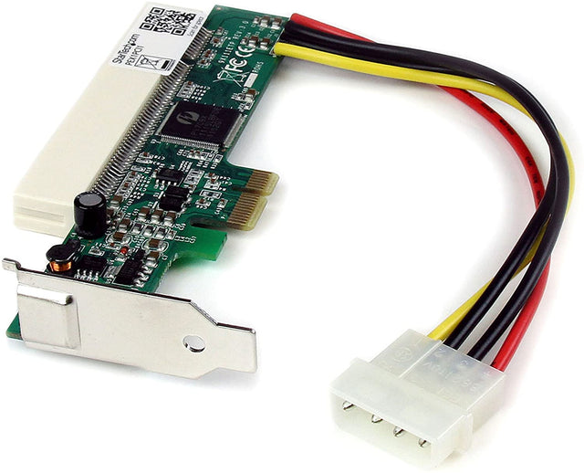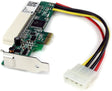 This PCIe to PCI Adapter Card lets you use low profile PCI expansion cards in a server or desktop motherboard PCI Express slot. Compliant with PCI Express Specification 1.0a and PCI Specification 2.2, the adapter card connects through a PCIe 1x slot to provide a low profile PCI slot in its place. A spare full size bracket for PCI Express card is also included for use in larger desktop or server PCI Express slots. A versatile solution, the adapter card converts PCIe to PCI or PCI-X; a built-on LP4 power connector links the card to the computer power supply, allowing you to install universal voltage PCI cards (3.3V/5V). The adapter card offers an economical solution that lets you extend the usability of older or extra PCI Bus cards in newer PCIe capable systems. To ensure suitable installation in any low profile server or desktop computer, the PCIe/PCI adapter features an innovative bracket design that adapts and secures the low profile PCI or PCI-X card into the converted slot.