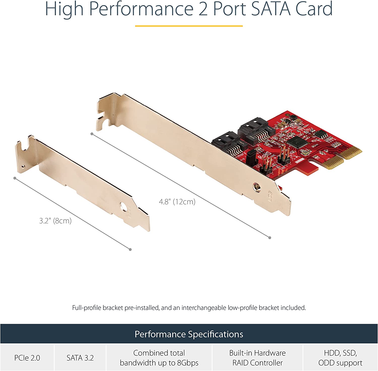 StarTech.com SATA PCIe Card - 2 Port PCIe SATA Expansion Card - 6Gbps - Full/Low Profile - PCI Express to SATA Adapter/Controller - ASM1062R SATA RAID - PCIe to SATA Converter (2P6GR-PCIE-SATA-CARD) 2 Port RAID