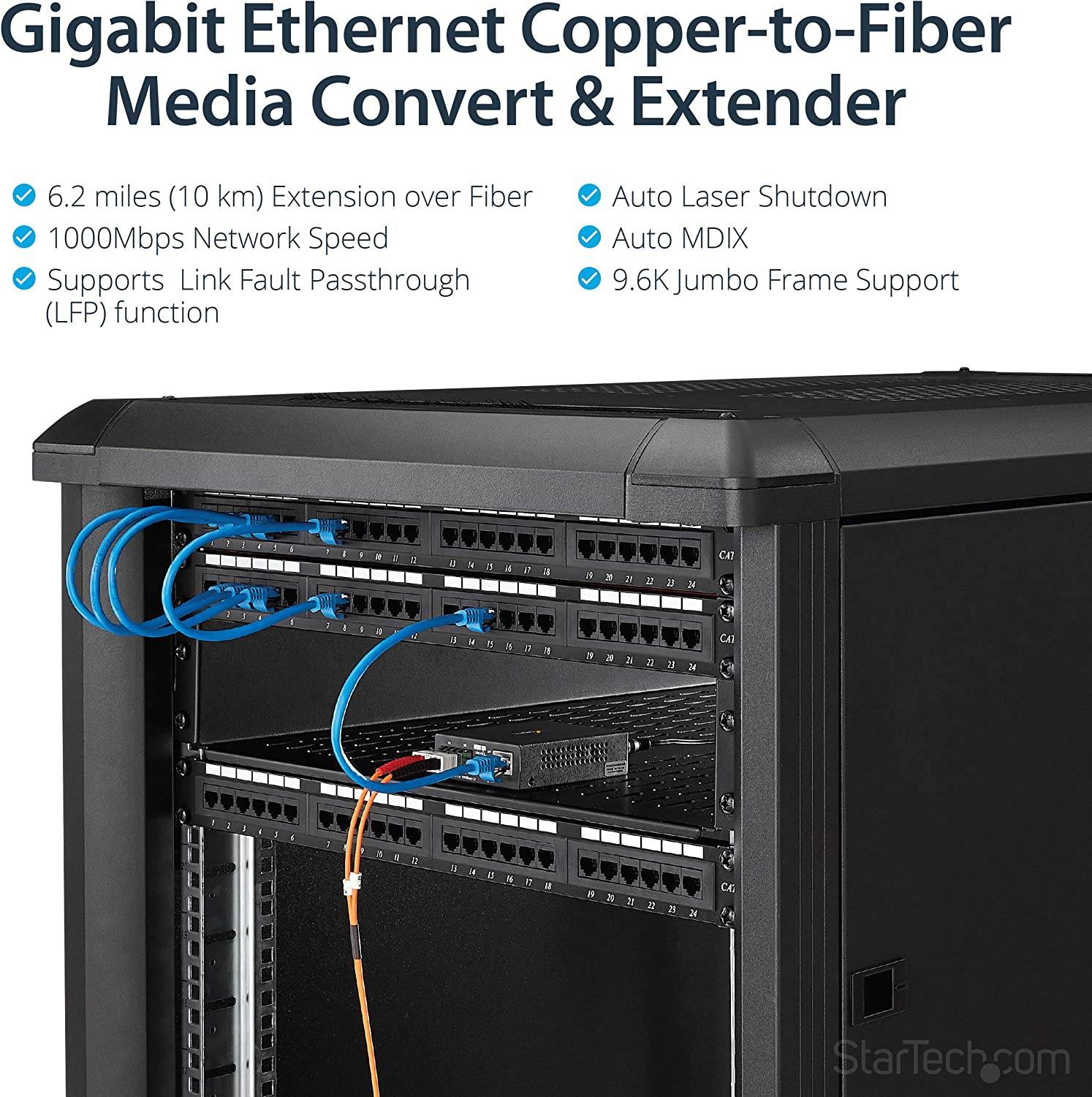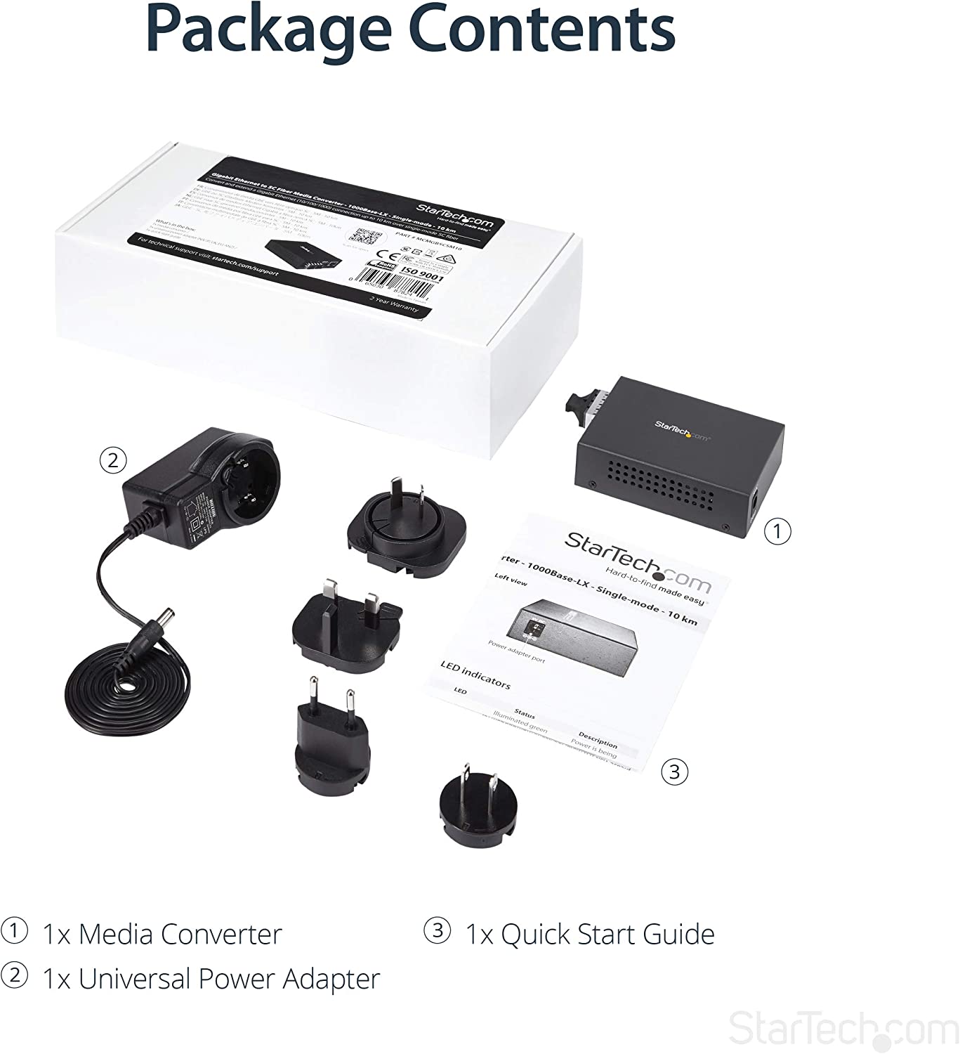 StarTech.com Singlemode (SM) SC Fiber Media Converter for 10/100/1000 Network - 10km - Gigabit Ethernet - 1310nm - w/Auto Negotiation (MCMGBSCSM10) 1"x4.1"x2.8" No Chassis Mount