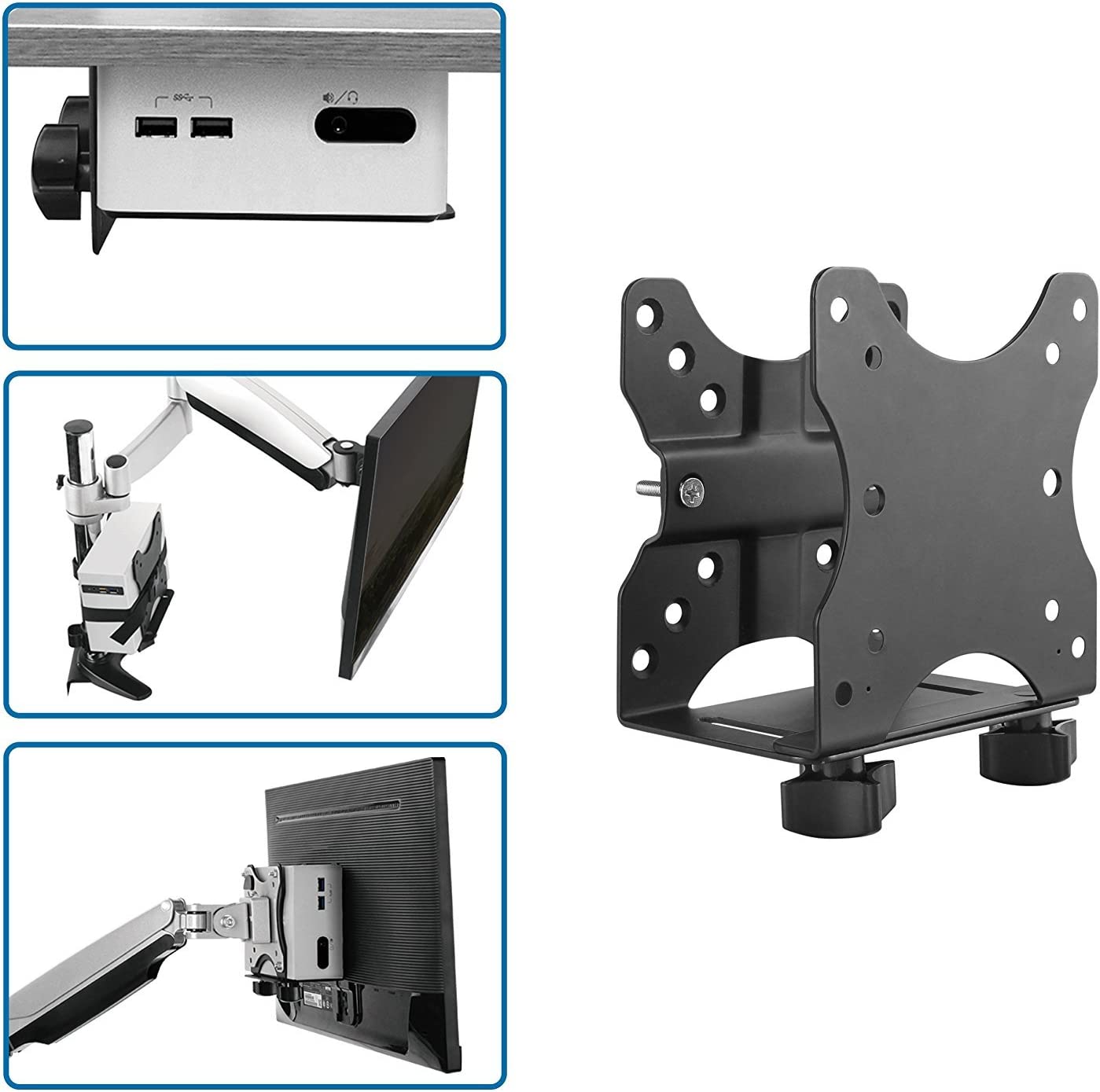The versatile double-sided VESA mount offers several installation options, enabling you to mount your thin-client PC or dock to the back of your monitor or under your desktop, or clamp it to a monitor-mount pole. The mount supports 75x75, and 100x100 VESA mount compatibility, making it suitable for most monitors and monitor mounts.