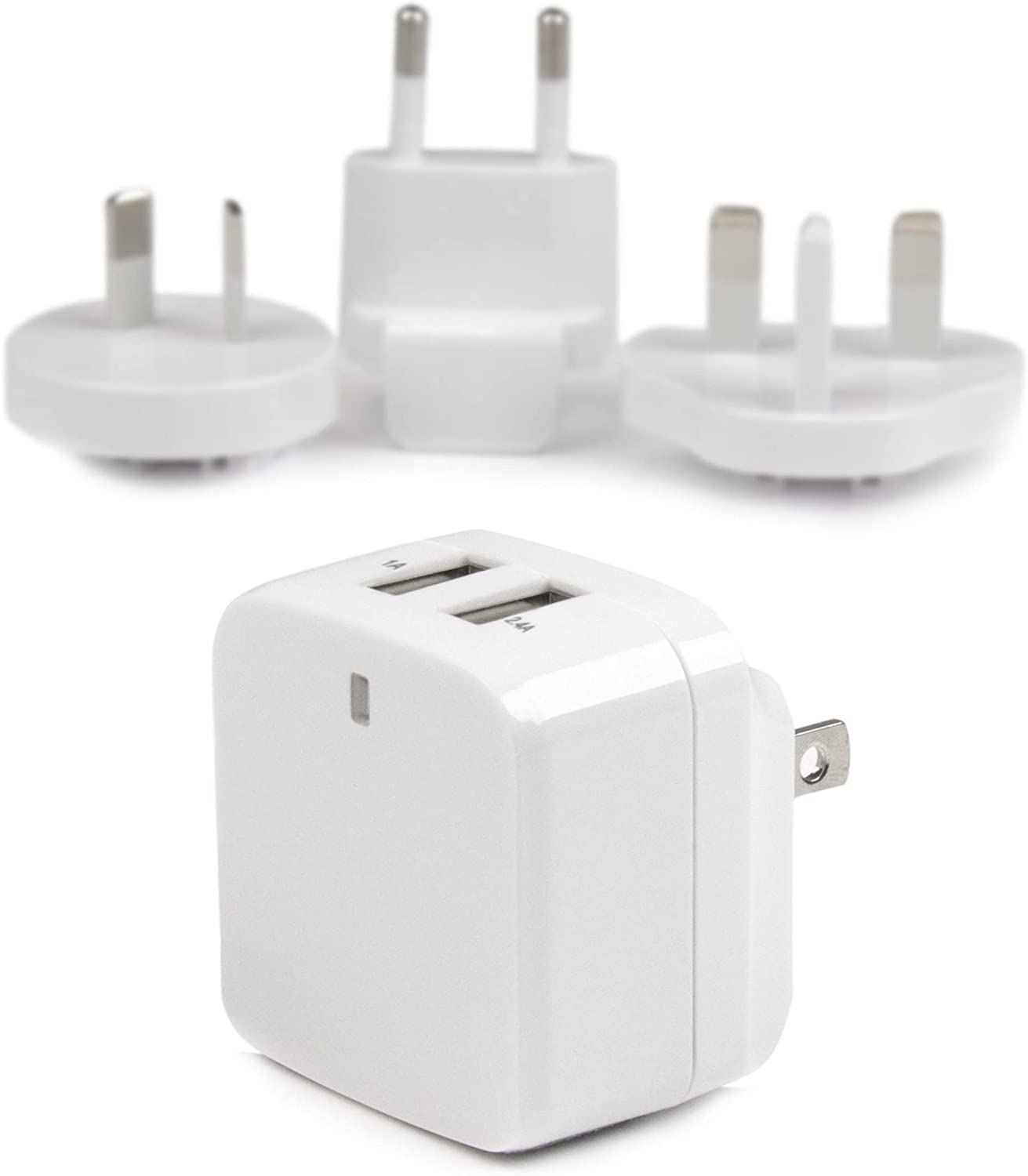 Charge your tablet and your phone simultaneously - Planning an international business trip or vacation? Now you can keep your mobile devices charged while you're away, without having to worry about whether or not the adapter you use at home will work overseas. The versatile travel charger ships with interchangeable power plugs that let you plug in and charge your devices nearly anywhere you go around the world. Plus, you can charge two of your devices at the same time. This dual-port USB wall charger lets you charge two mobile devices at once, using a single USB wall charger, so you won't have to wait until one of your devices is fully charged before charging another. International travel - universal power adapter The wall charger includes a universal power adapter, which lets you plug in to any electrical socket almost anywhere in the world. So, no matter where you are travelling to, you can rest assured that you'll be able to keep your mobile devices charged and ready to use. Simultaneous charging - dual USB charge ports With one 1A port for charging your smartphone or iPhone, and a 2.4A port for charging your iPad or other tablet, you'll always have the necessary charging power for your mobile devices. Whether you're charging two phones at the same time or charging a phone and a tablet, you can ensure all of your mobile devices are ready when you need them. Compact and lightweight - portable design The portable USB wall charger features a folding North American plug that tucks away nicely to fit inside your laptop bag, purse, backpack or other carrying case, making it the perfect mobile accessory for any carry-on. Plus, you can easily throw in the correct international plug for your destination and you're all set to go. Once you land you can swap out the plugs and be ready to charge in the airport, in your hotel room or just about anywhere you can find a wall outlet. The USB2PACWH is backed by our 2-year warranty to ensure dependable performance.