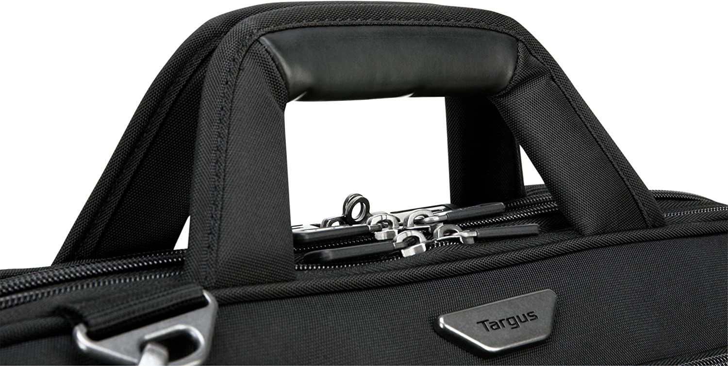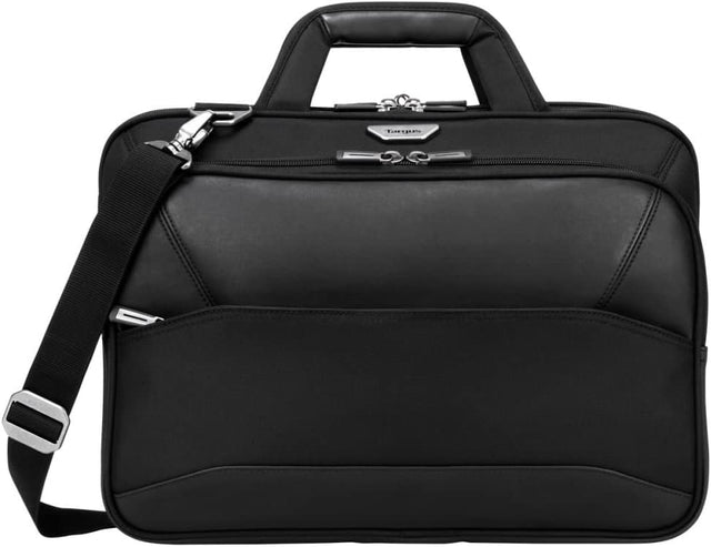 Targus Mobile-VIP Topload Shoulder Bag with Checkpoint-Friendly TSA Screening, Weather Resistant, Dual Main Compartments, Trolley Strap, SafePort Drop Protection for 15.6-Inch Laptop, Black (TBT264)