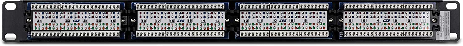 TRENDnet 24-Port Cat5-5e RJ-45 UTP Unshielded Patch Panel, Wallmount or Rackmount, 100Mhz, Color-Coded Labeling, Cat5,Cat5e,Cat4,Cat3 Compatible, 1U Rackmount, Black, TC-P24C5E