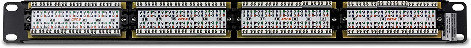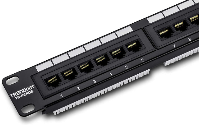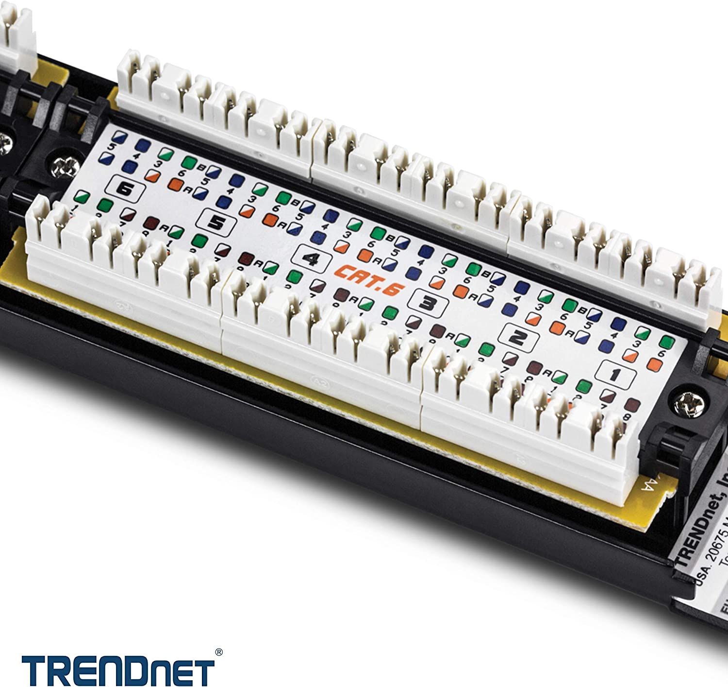 TRENDnet 24-Port Cat6 Unshielded Patch Panel, Wallmount or Rackmount, Compatible with Cat3,4,5,5e,6 Cabling, For Ethernet, Fast Ethernet, Gigabit Applications, Black, TC-P24C6