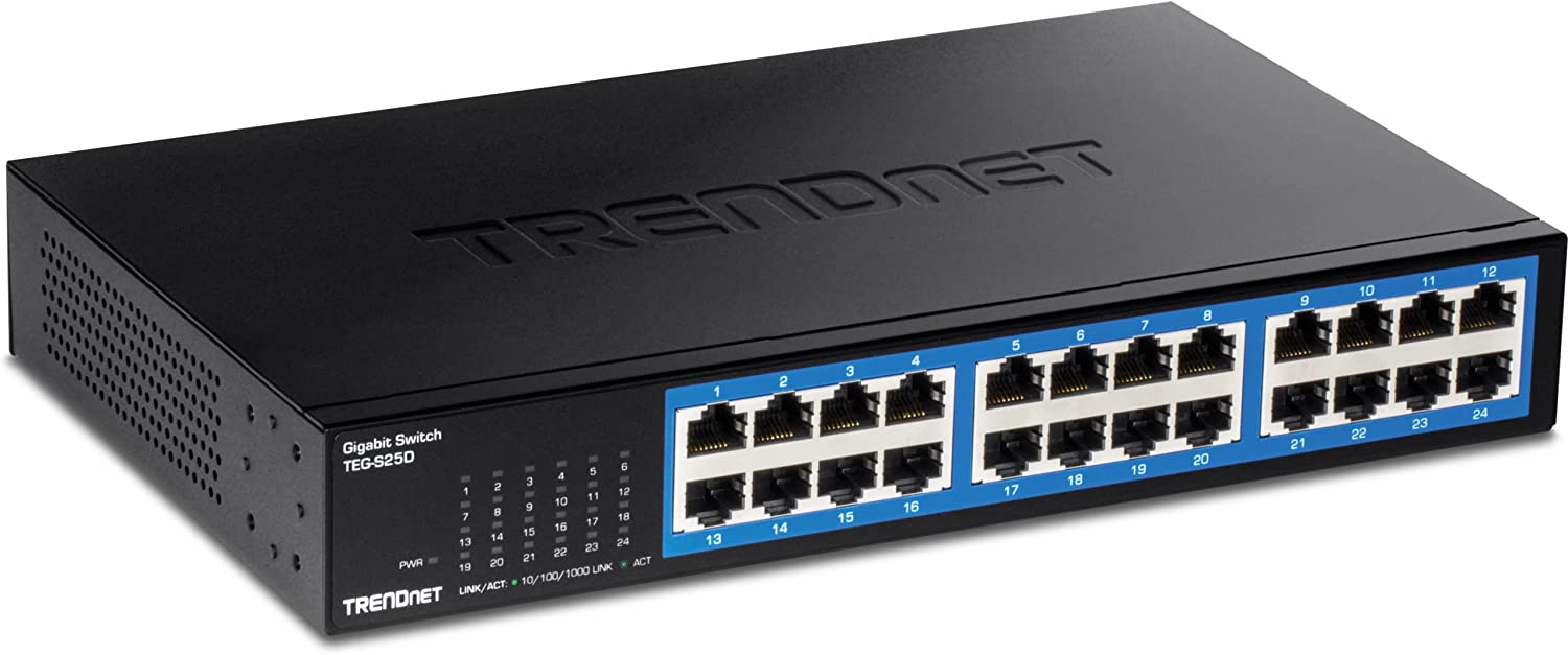 TRENDnet 24-Port Gigabit Desktop Switch, TEG-S25D, 24 x Gigabit RJ-45 Ports, 48Gbps Switching Capacity, Fanless Design, Metal Enclosure, Internal Power Supply, Lifetime Protection, Black is backordered and will ship as soon as it is back in stock.