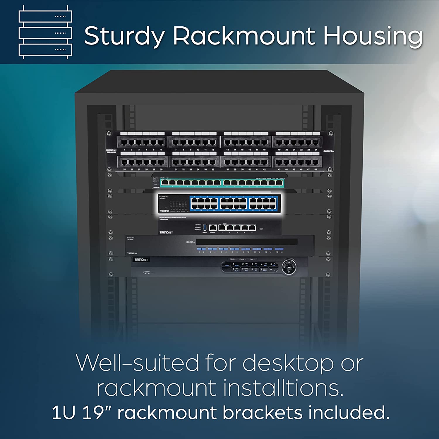 The 24-Port Gigabit Desktop Switch, model TEG-S25D, provides high bandwidth performance, ease of use, and reliability. Boost office network efficiency and eliminate network congestion with gigabit speeds and a total switching capacity of 48Gbps with full duplex mode. A built-in universal power supply reduces cable clutter and diagnostic LEDs help with network troubleshooting. Plug and play this sturdy metal switch for reliable high-speed network connectivity.