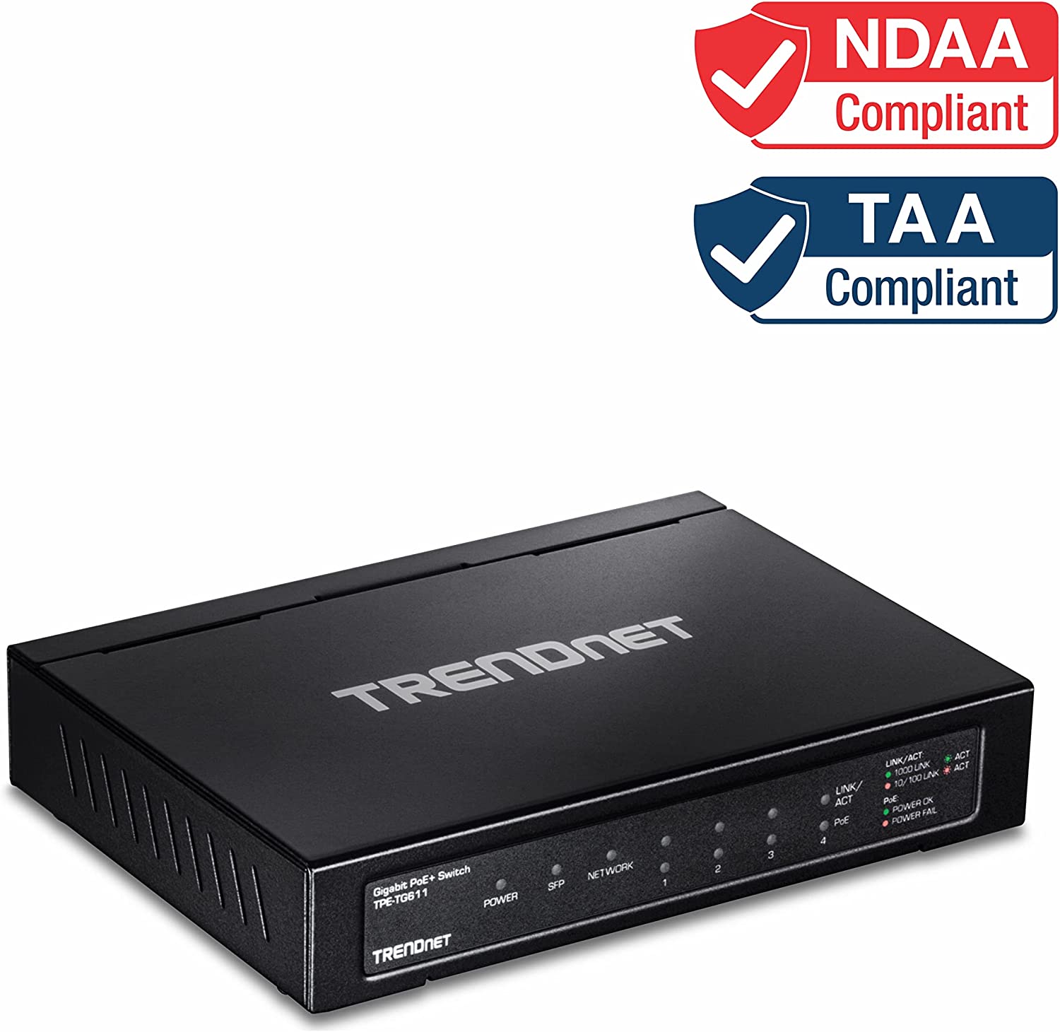 TRENDnet 6-port Gigabit Poe+ Switch, TPE-TG611, 4 X Gigabit Poe+ Ports, 1 X Gigabit Port, 1 X SFP Slot, Supports 100/1000Base-FX Fiber SFP Modules, Ethernet Desktop Network Switch, Lifetime Protection