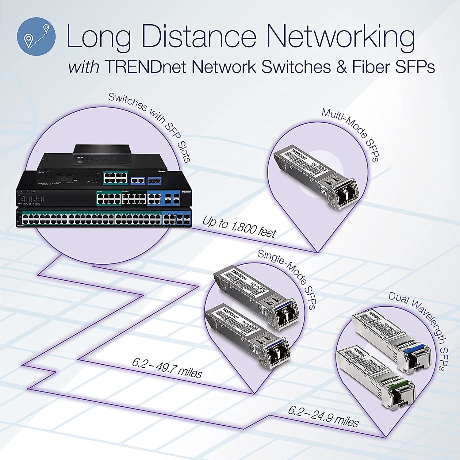 Trendnet’s 6-Port Gigabit PoE+ switch, model TPE-TG611, reduces equipment and installation costs by delivering data and power over existing Ethernet cables. This small network switch with SFP support provides four Gigabit PoE+ ports with a total Poe power budget of 65W, one Gigabit port, and one SFP slot for fiber applications. With PoE technology, users only need one set of cables to deliver both data and power. The small network switch with SFP support allows you to network PoE devices such as wireless access points, IP cameras, VoIP phones, IP video encoders, access Controls, and more. The added SFP slot supports both single mode and multi-mode fiber SFP modules for long-distance fiber networking applications.Poe+ power: