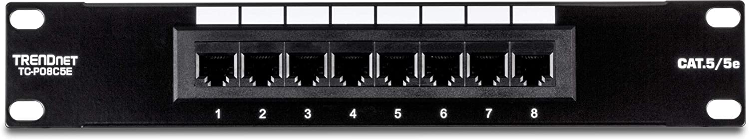 TRENDnet 8 Port Cat5/5e Unshielded Patch Panel,TC-P08C5E, Wallmount or Rackmount, 10 Inch Wide, 8 x Gigabit RJ-45 Ethernet Ports, 100 Mhz Connection, Color Coded Labeling,110 IDC Terminal Blocks,black