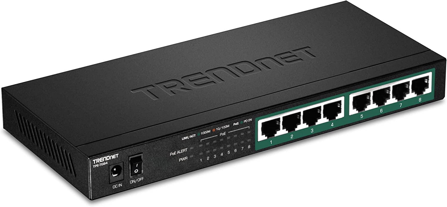 TRENDnet 8-Port Gigabit PoE+ Switch, 120W PoE Power Budget, 16Gbps Switching Capacity, IEEE 802.1p QoS, DSCP Pass-Through Support, Fanless, Wall Mountable, Lifetime Protection, Black, TPE-TG84 is backordered and will ship as soon as it is back in stock.