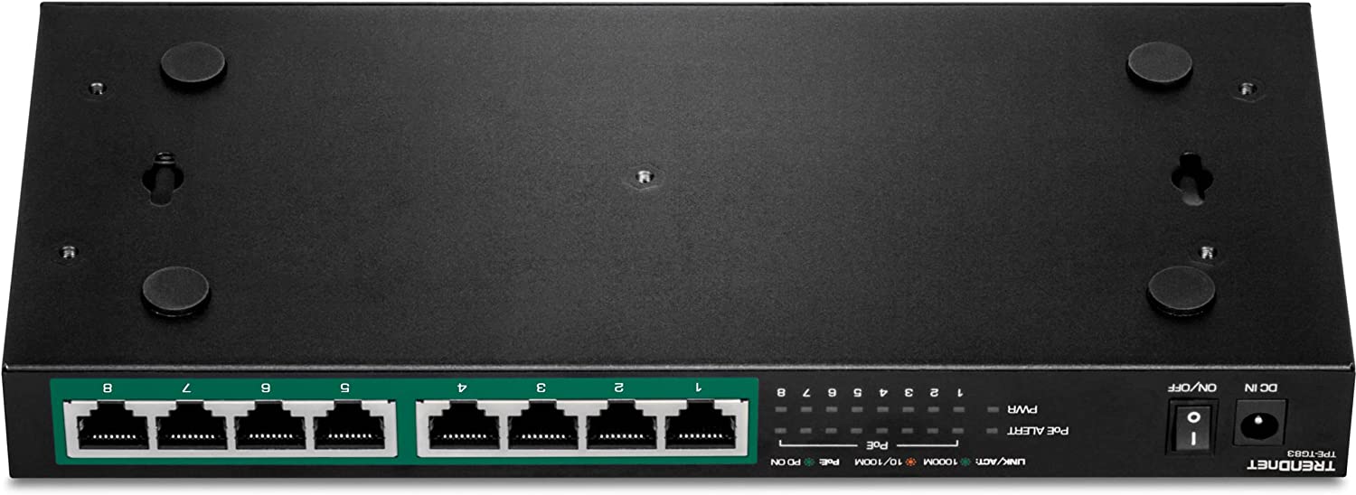 TRENDnet 8-Port Gigabit PoE+ Switch, 65W PoE Power Budget, 16Gbps Switching Capacity, IEEE 802.1p QoS, DSCP Pass-Through Support, Fanless, Wall Mountable, Lifetime Protection, Black, TPE-TG83 65W 8-Port