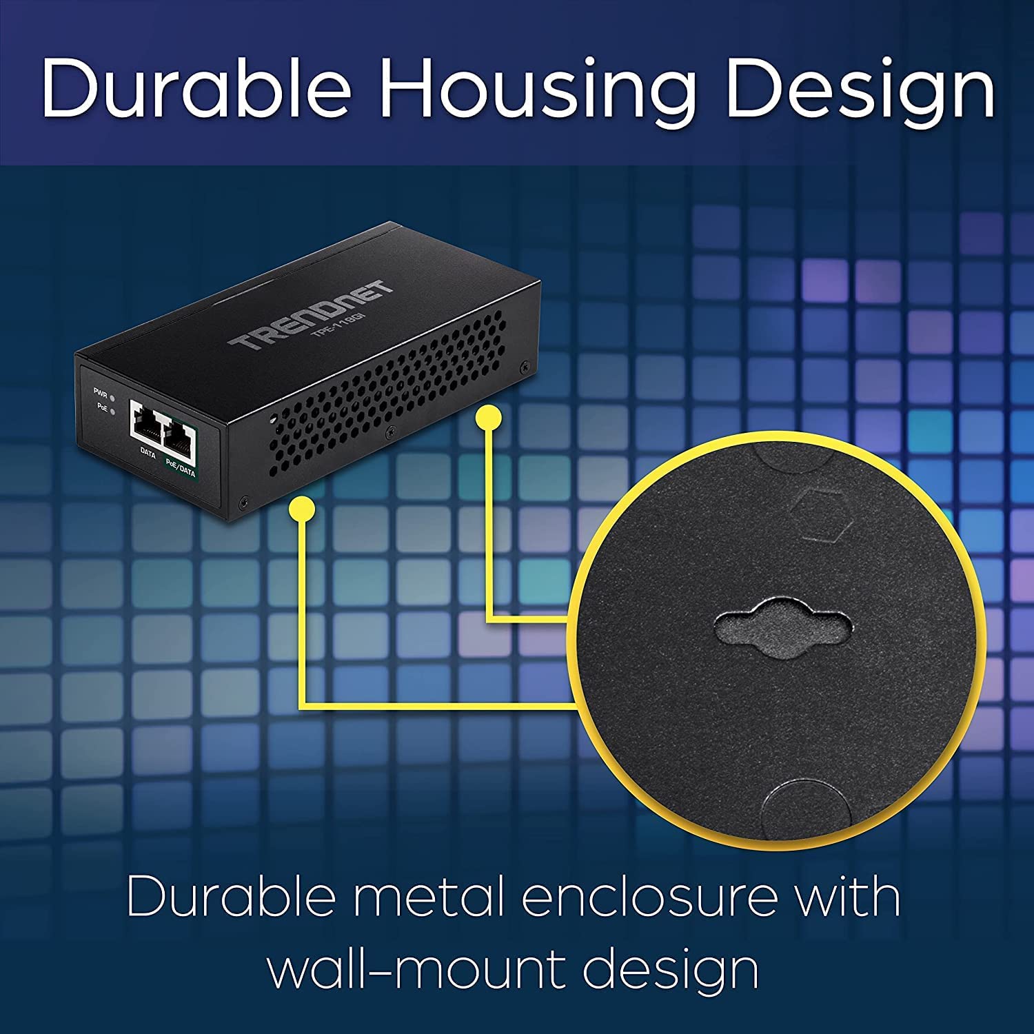 TRENDnet's Gigabit PoE++ Injector, model TPE-119GI, is an 802.3bt PoE injector that combines electrical power with a gigabit network connection to produce a high-powered 95W PoE++ network signal. Auto-sensing technology conveniently delivers the correct wattage needed to power your PoE, PoE+, and PoE++ devices. Connect the Gigabit PoE++ injector to a non-PoE switch, and then run an Ethernet cable with data + power to network a PoE device up to 100 meters (328 ft.) away. Network PoE devices such as wireless access points, IP cameras, VoIP phone systems, IPTV decoders, access controls, and more with this 802.3btbt PoE injector.
