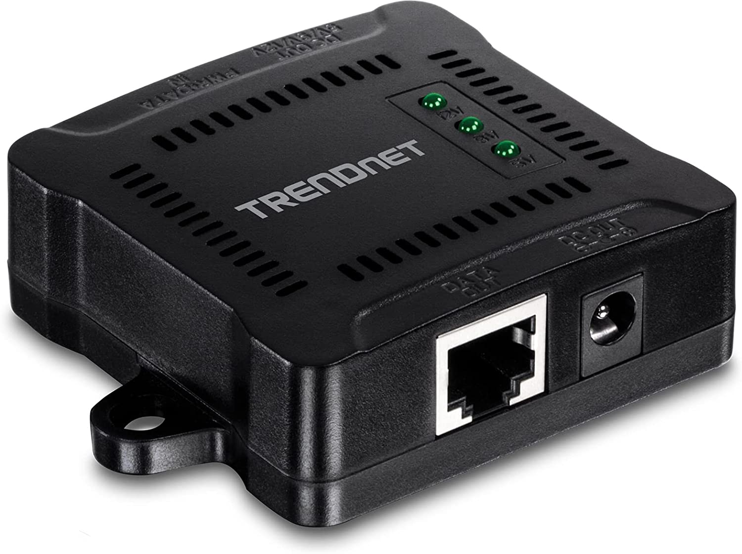 TRENDnet Gigabit PoE Splitter, 1 x Gigabit PoE Input Port, 1 x Gigabit Output Port, Up to 100m (328 ft), Supports 5V, 9V, 12V Devices, 802.3af PoE Compatible, PoE Powered, Black, TPE-104GS