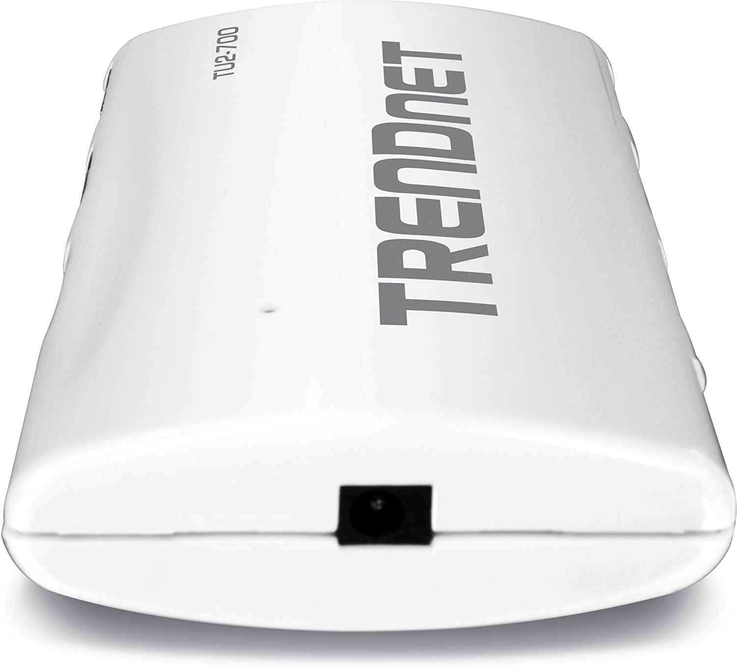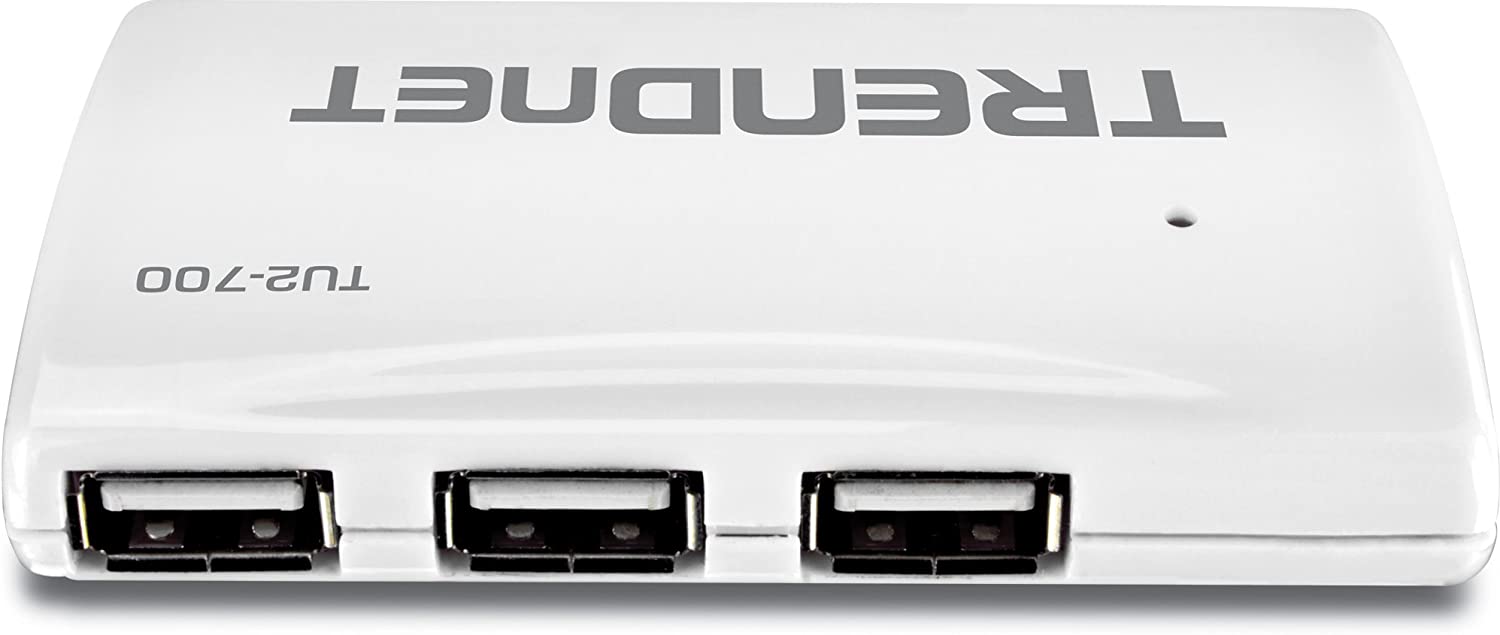TRENDnet USB 2.0 7-Port High Speed Hub, 5V/2A Power Adapter, Up to 480 Mbps USB 2.0 Connection Speeds, 10 Watts Total Power, Compatible with Windows, Mac, and Linux, White, TU2-700 7 Port USB 2.0