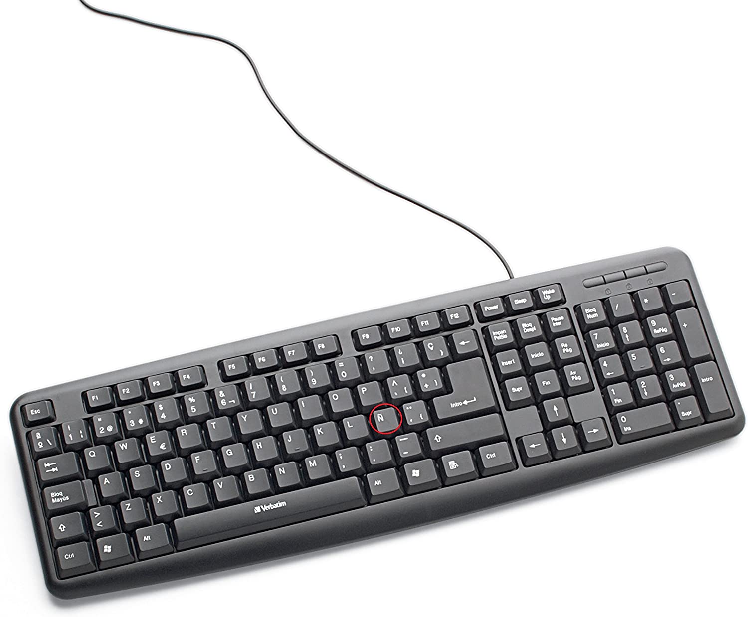 Verbatim Slim Corded USB Keyboard - Black (Spanish) - 98121